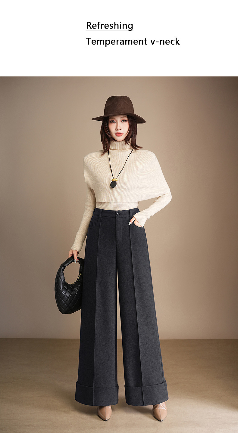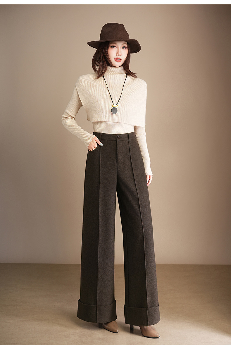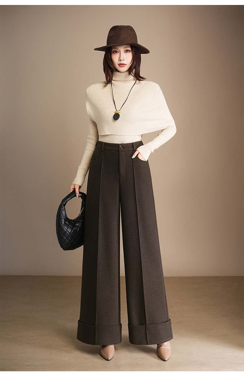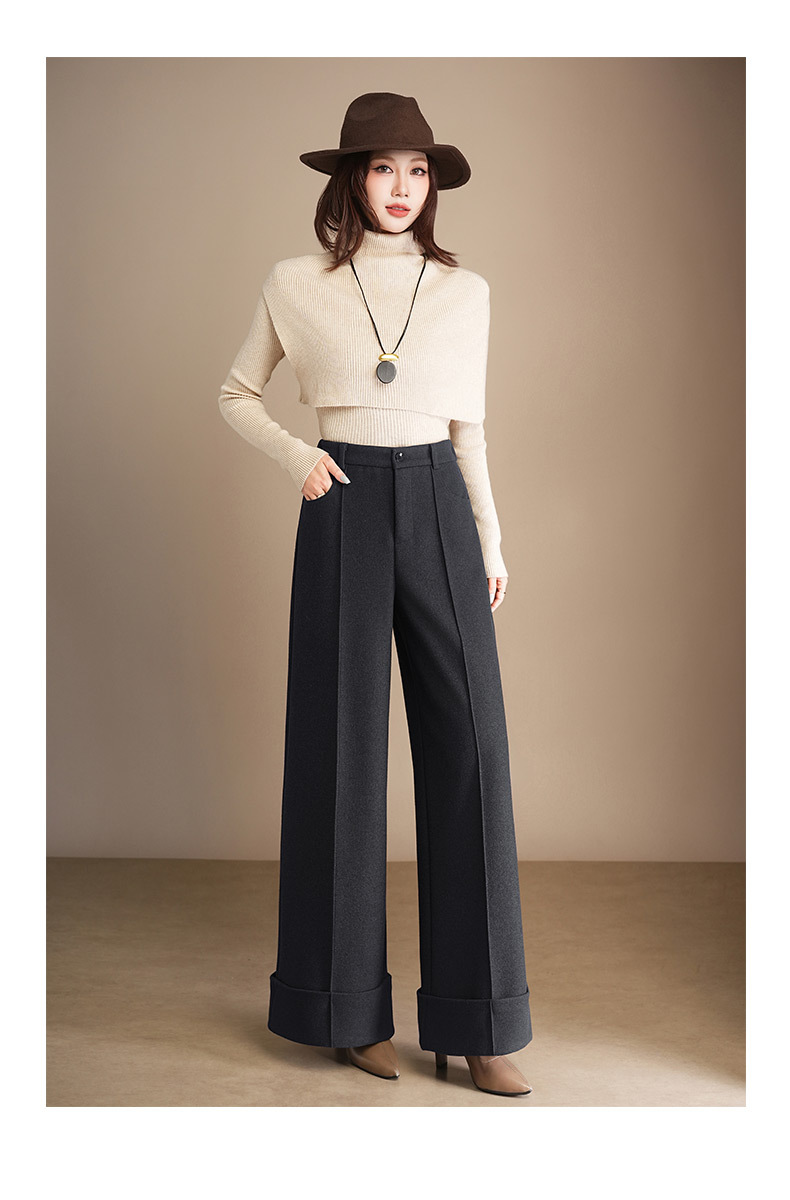 QYM 6997-Y加厚羊毛呢阔腿裤宽松休闲裤高腰时尚裤 商品图0