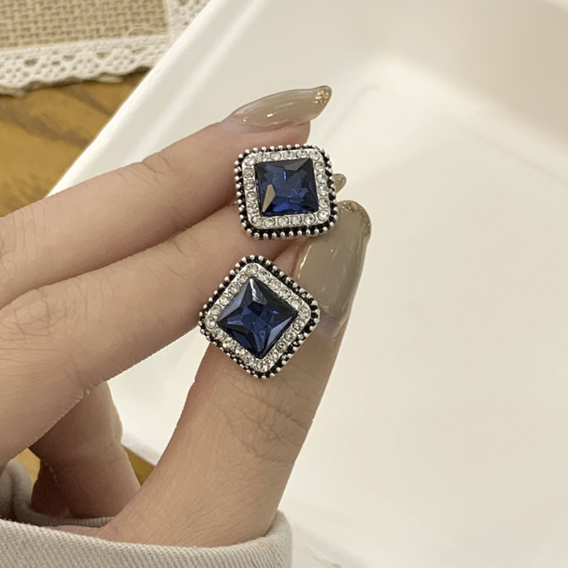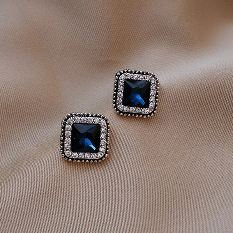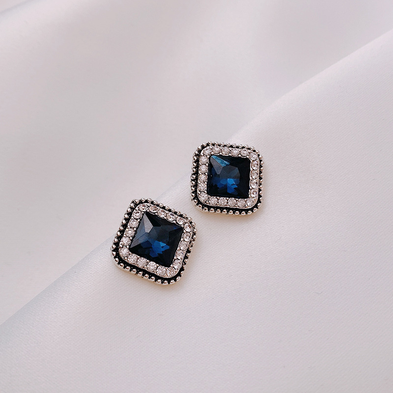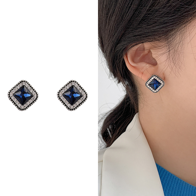 JU-D0395韩国蓝色耳环气质流行感女耳饰2021年新款潮方复古简约形水晶耳钉