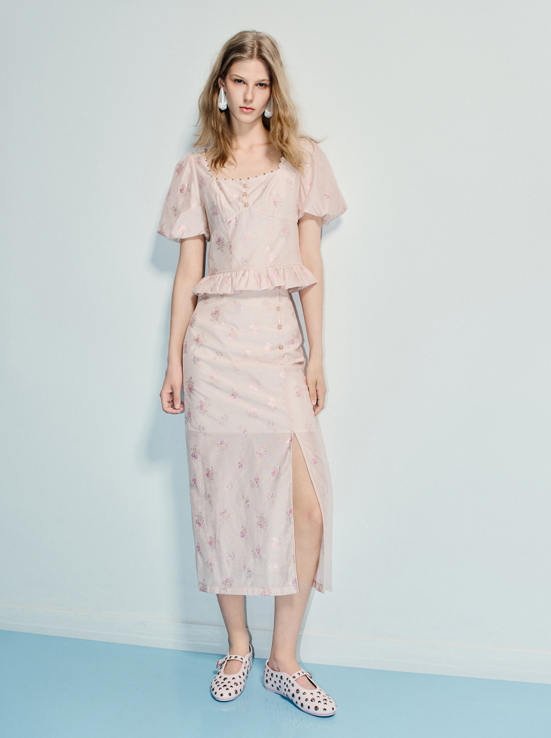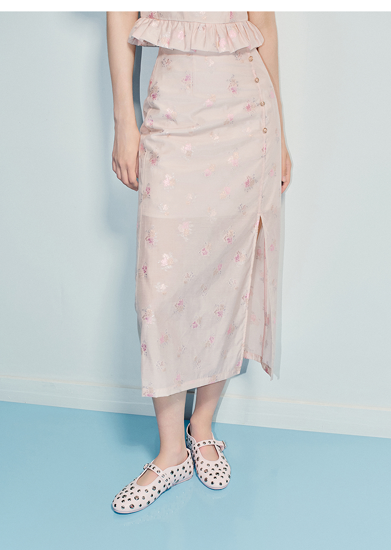 MAXRIENY25年夏季新款优雅新中式半裙提花高腰复古直筒裙国风(货号:MF86SK013)