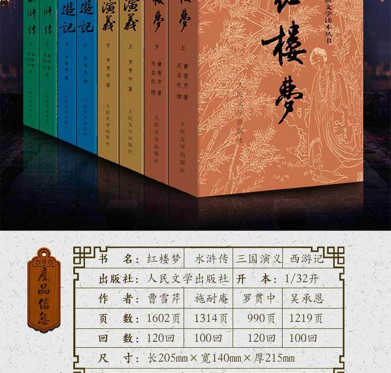 四大名著彩皮版原著三国演义西游记红楼梦水浒传任选中国古典文学读本丛书人民文学出版社初中生推荐阅读