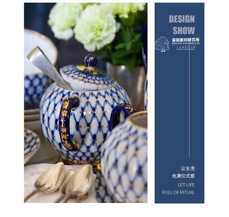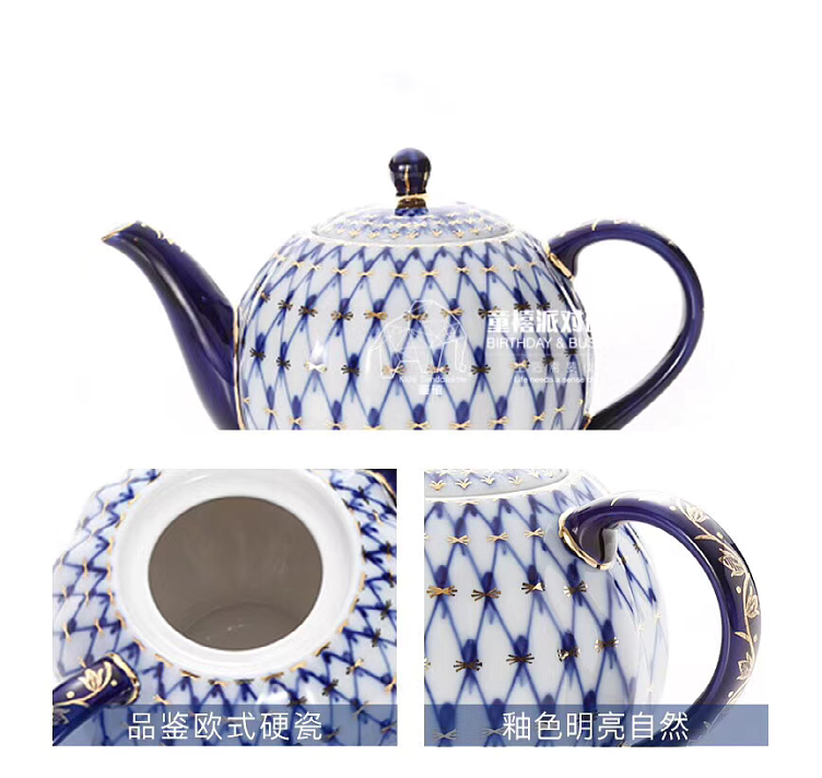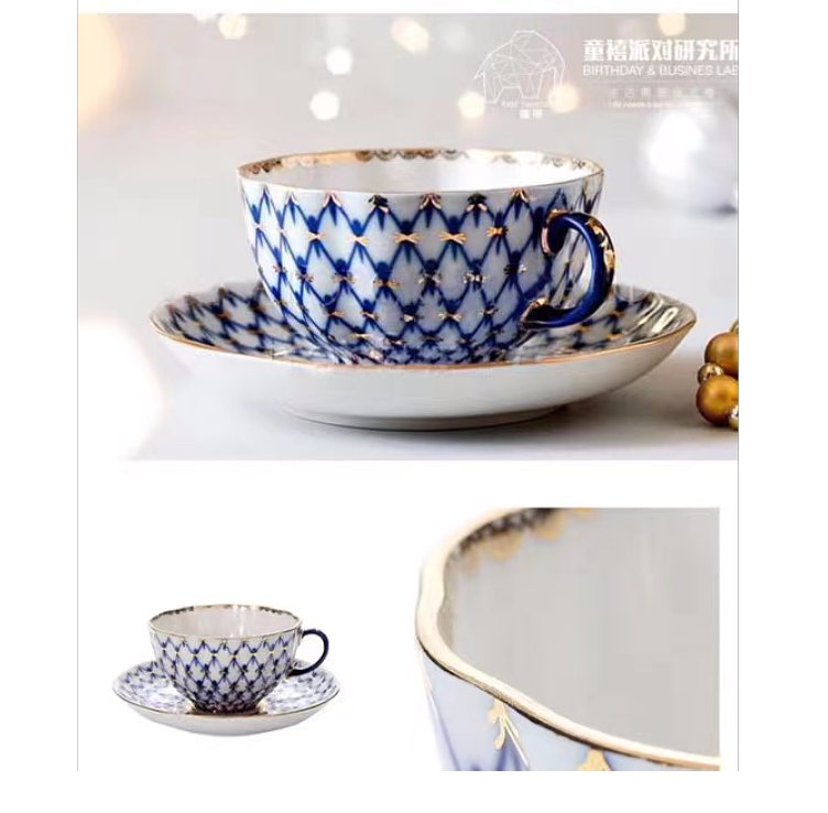 皇家瓷器钴蓝网纹下午茶杯套礼盒