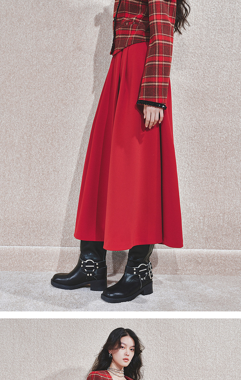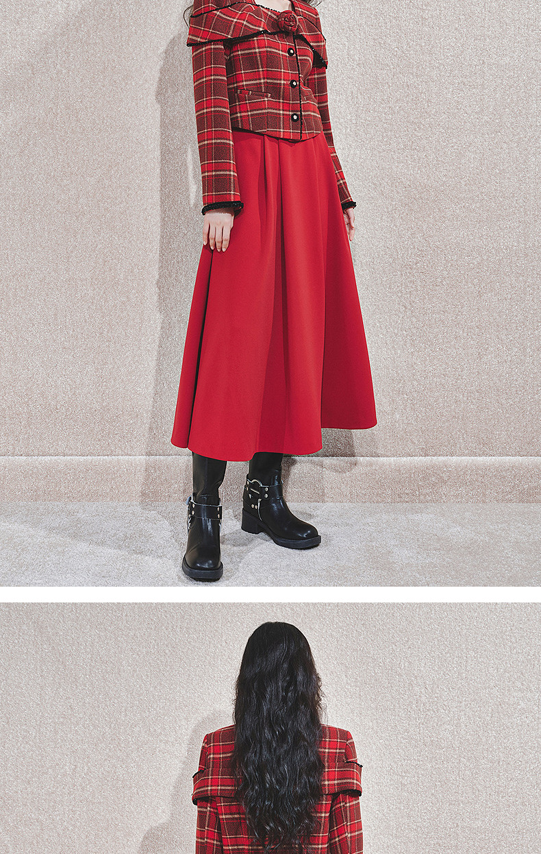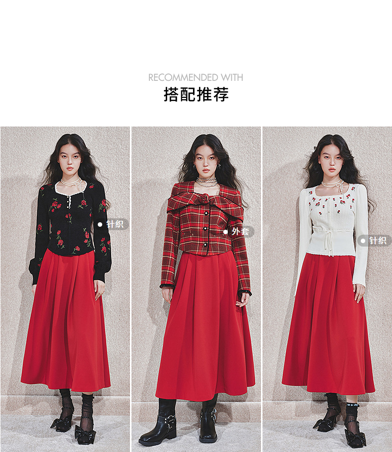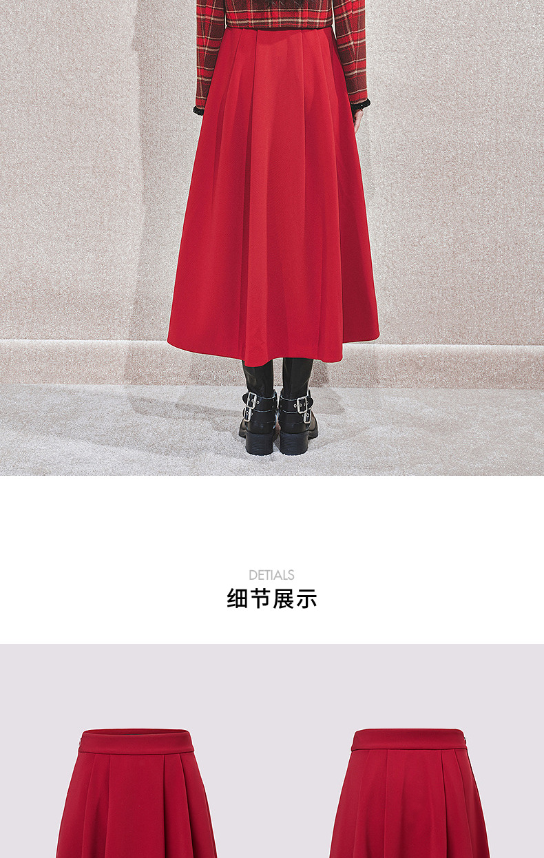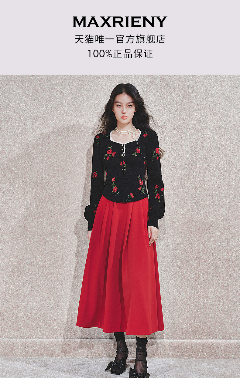 MAXRIENY【商场同款-节庆穿搭新年红】MAXRIENY复古收腰半裙中长裙(货号:MC85SK790)