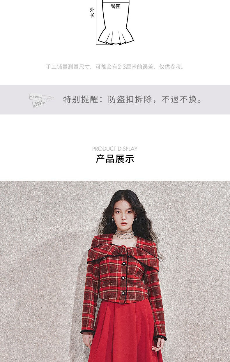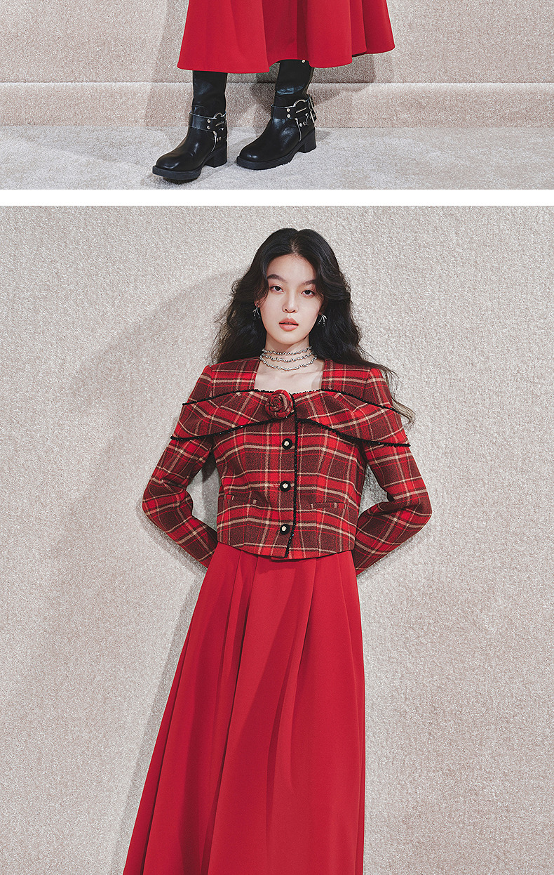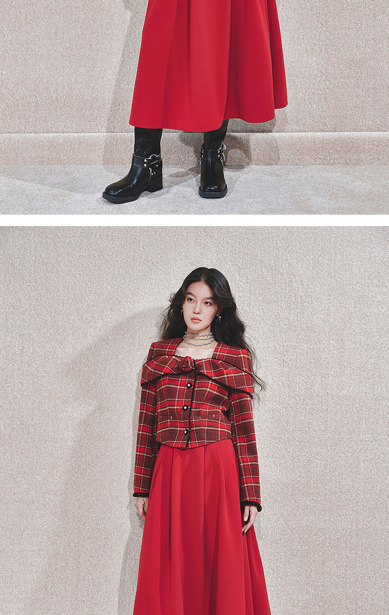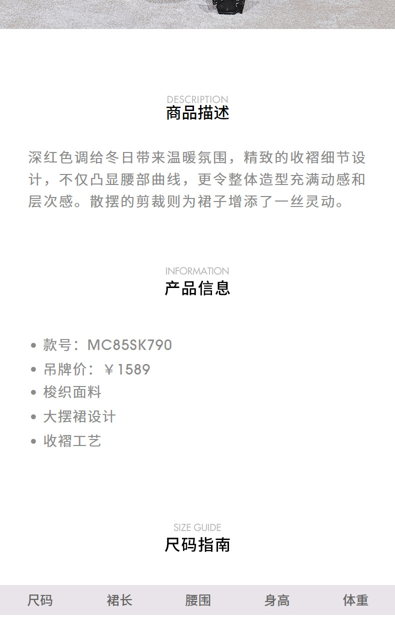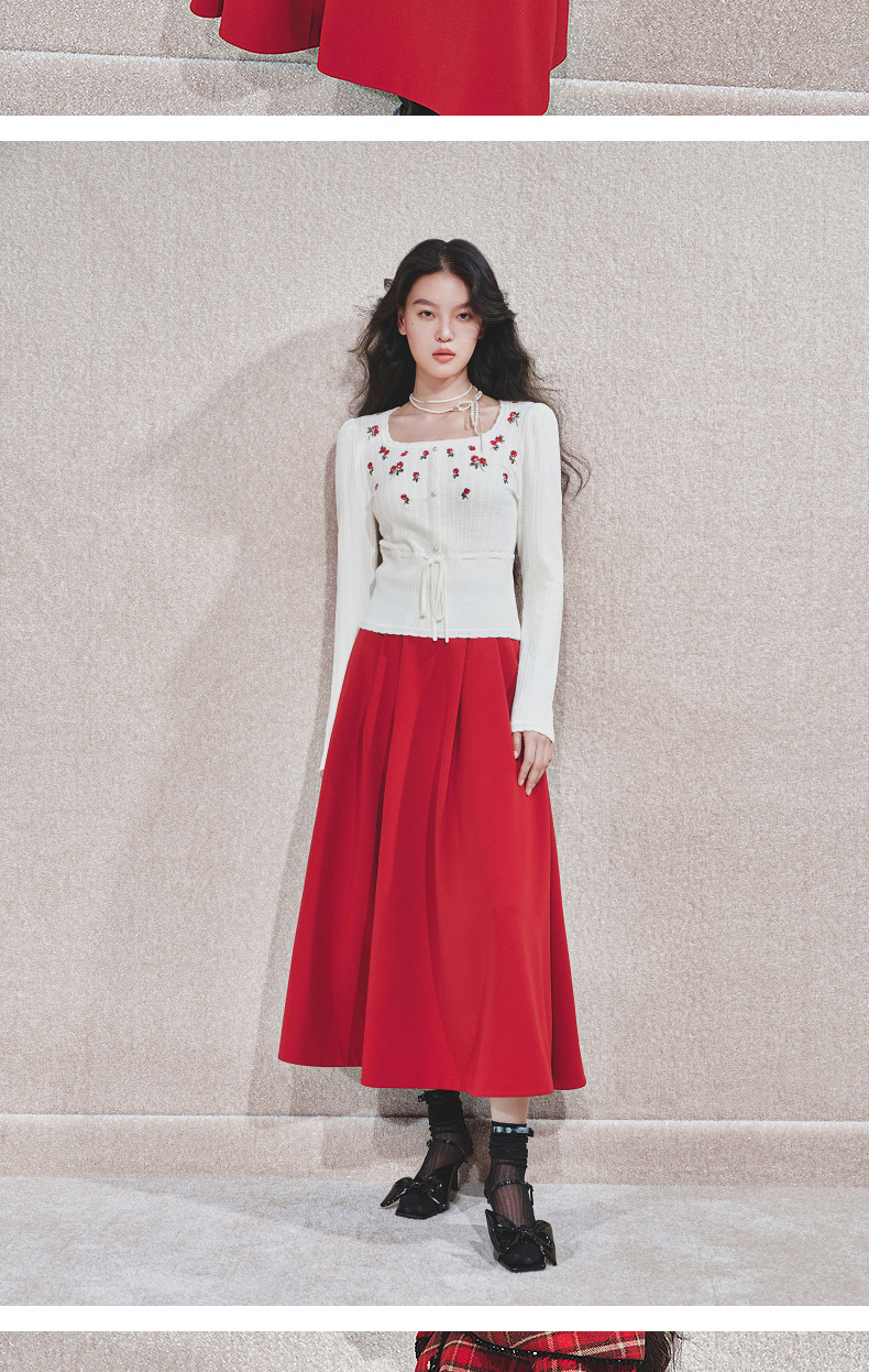 MAXRIENY【商场同款-节庆穿搭新年红】MAXRIENY复古收腰半裙中长裙(货号:MC85SK790)