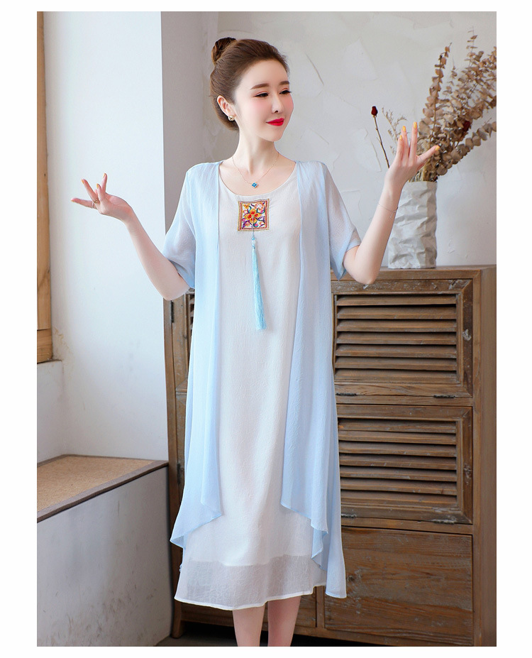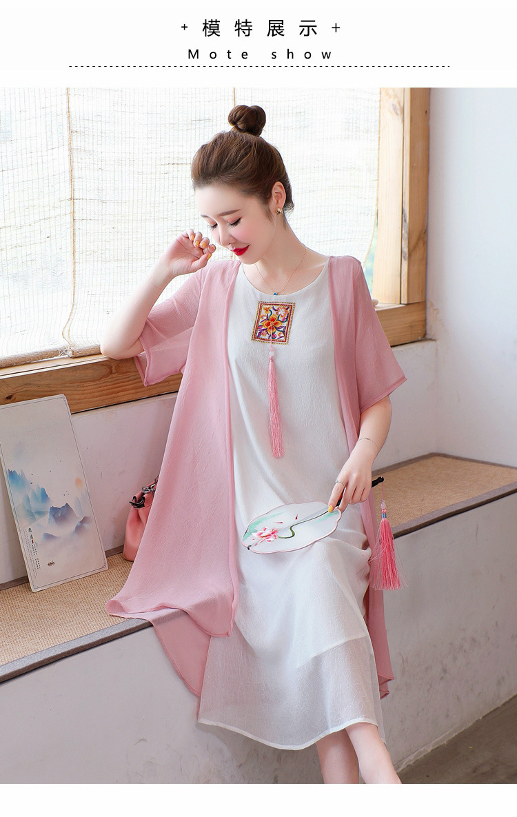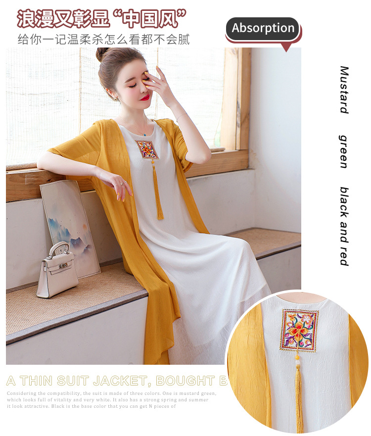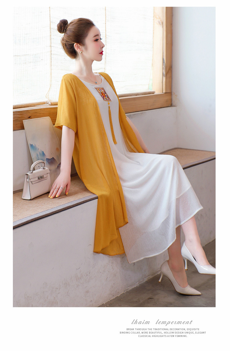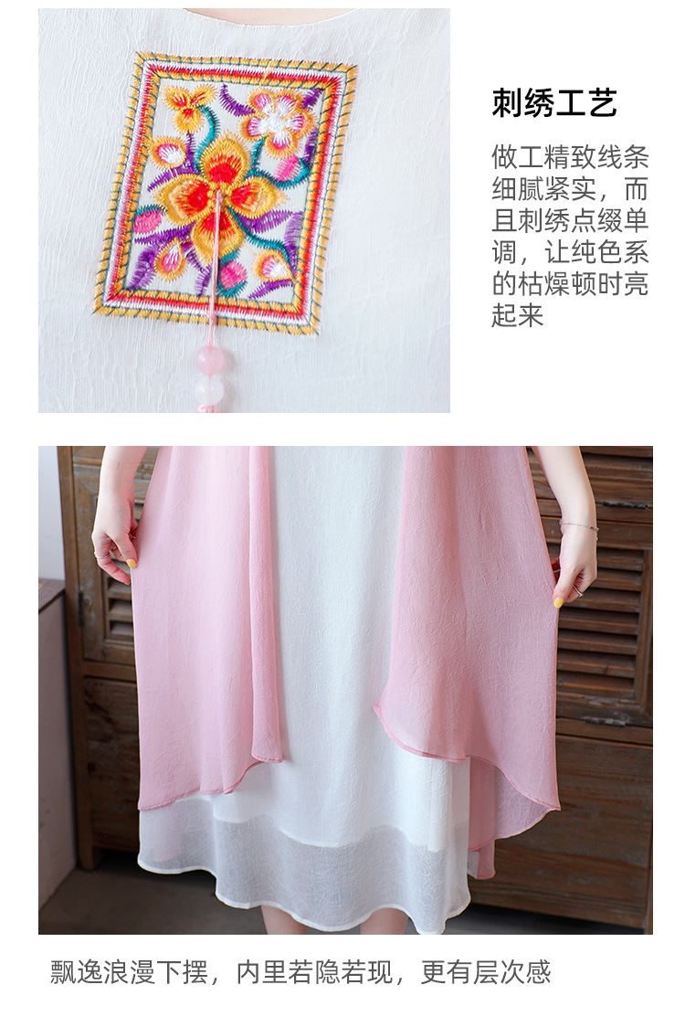 AHM-xmy6062新款棉麻中国风绣花中长款气质连衣裙