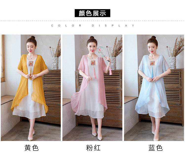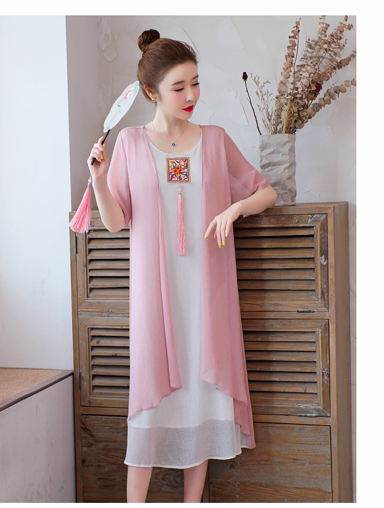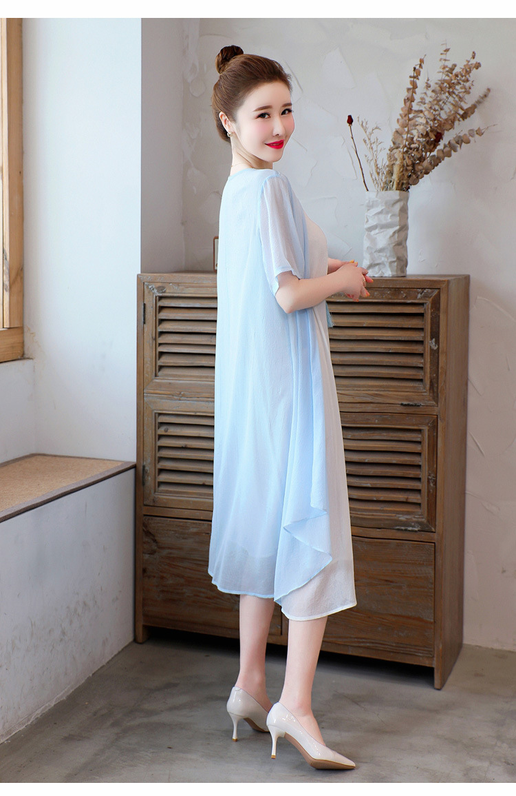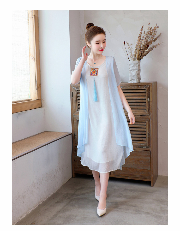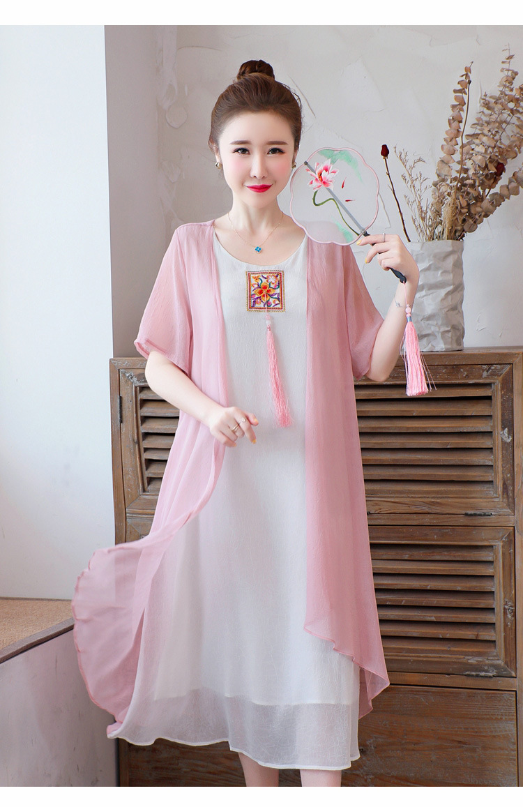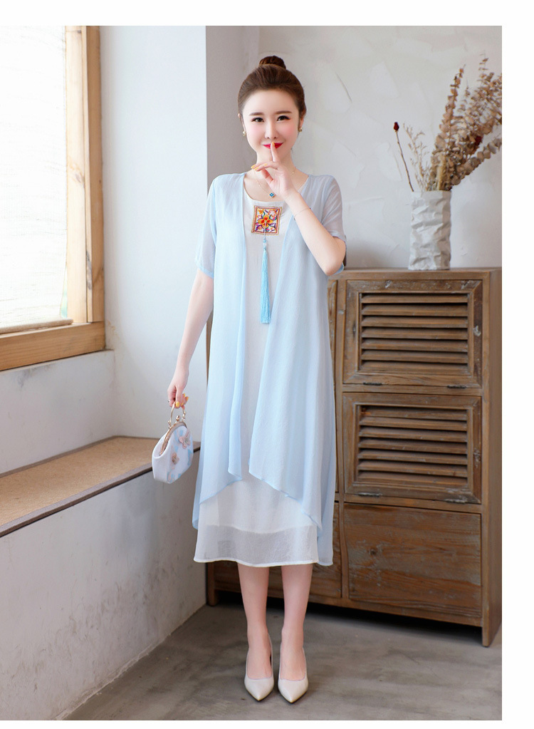 AHM-xmy6062新款棉麻中国风绣花中长款气质连衣裙