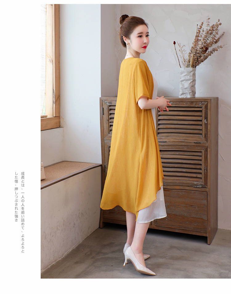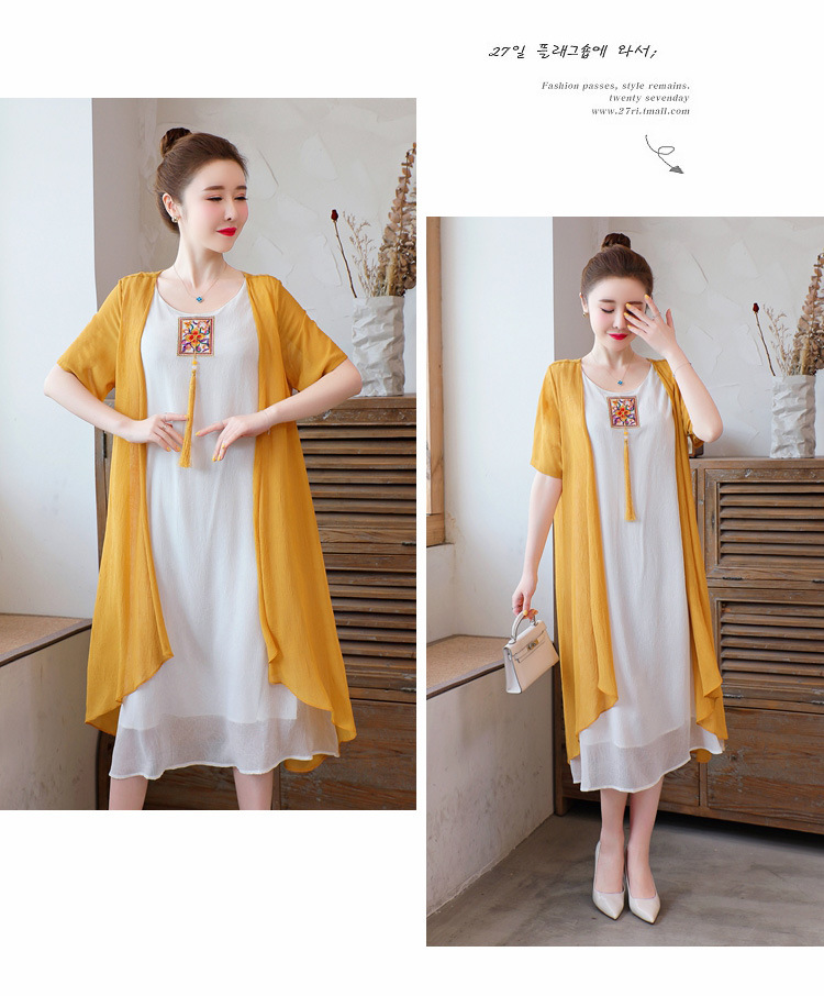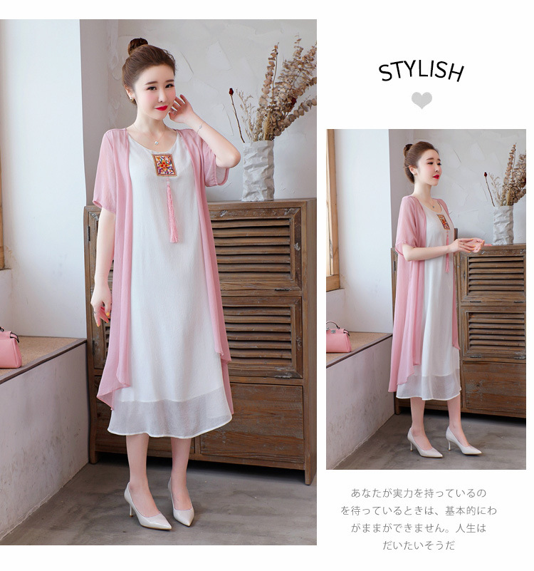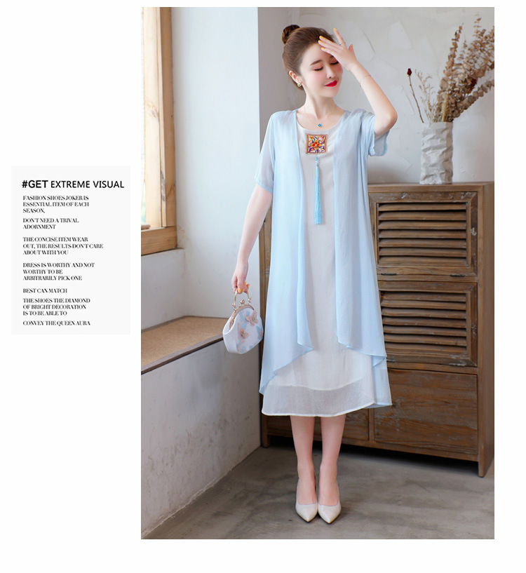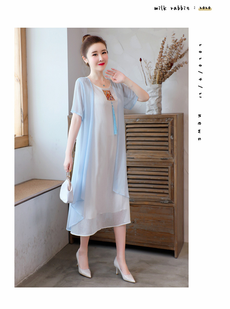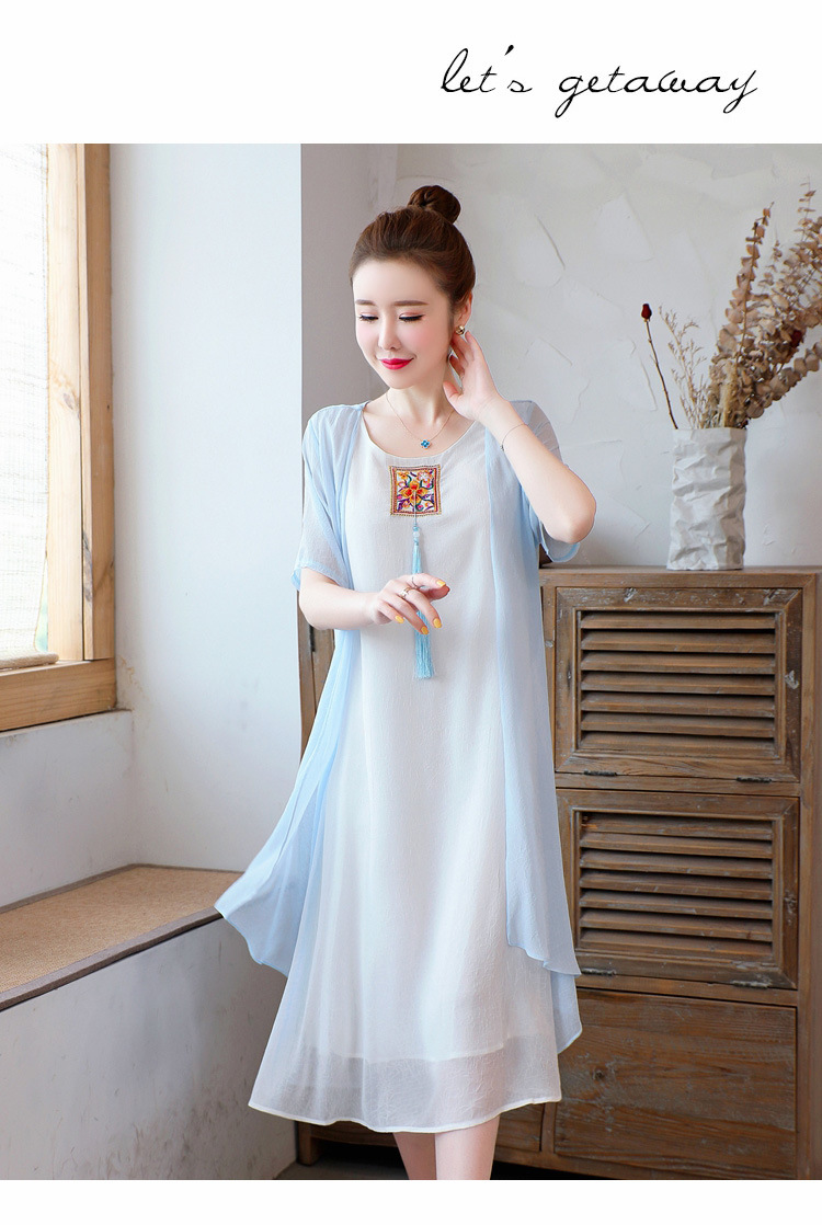 AHM-xmy6062新款棉麻中国风绣花中长款气质连衣裙