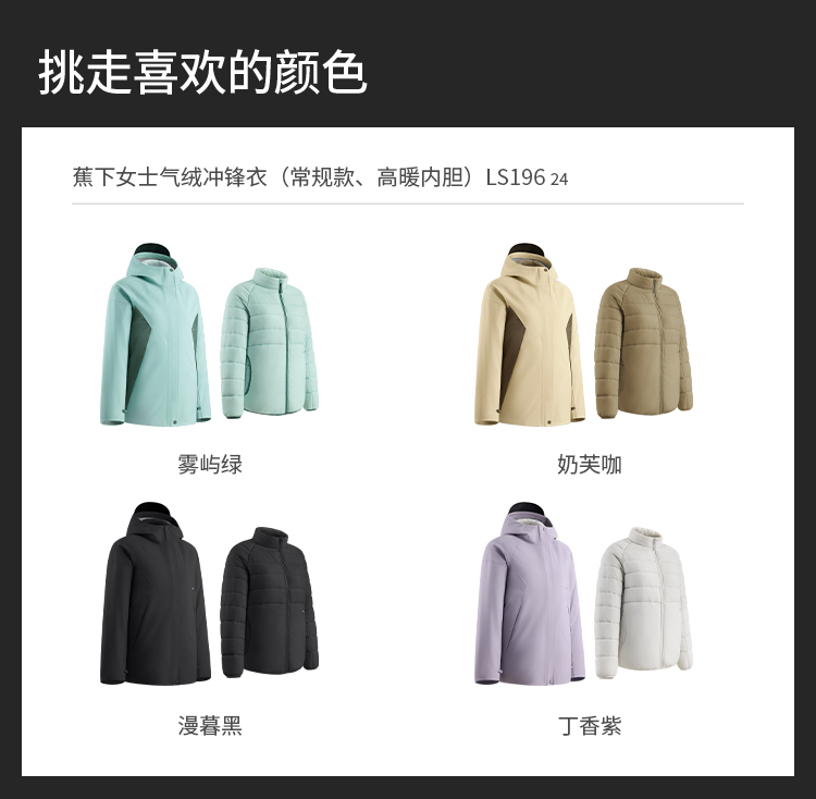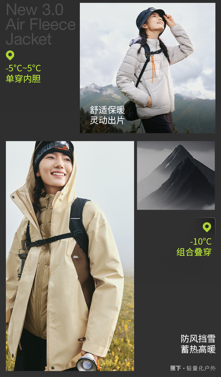 【蕉下精选】蕉下女士三合一氢绒软壳外套ST01625+ST01725