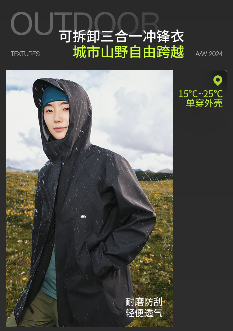 蕉下女气绒冲锋衣户外三合一可拆卸秋季外套防风防水进藏登山衣服19624
