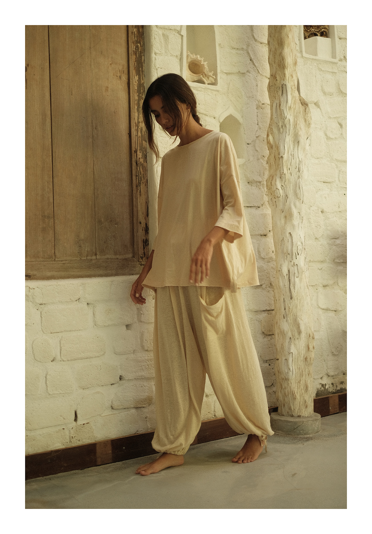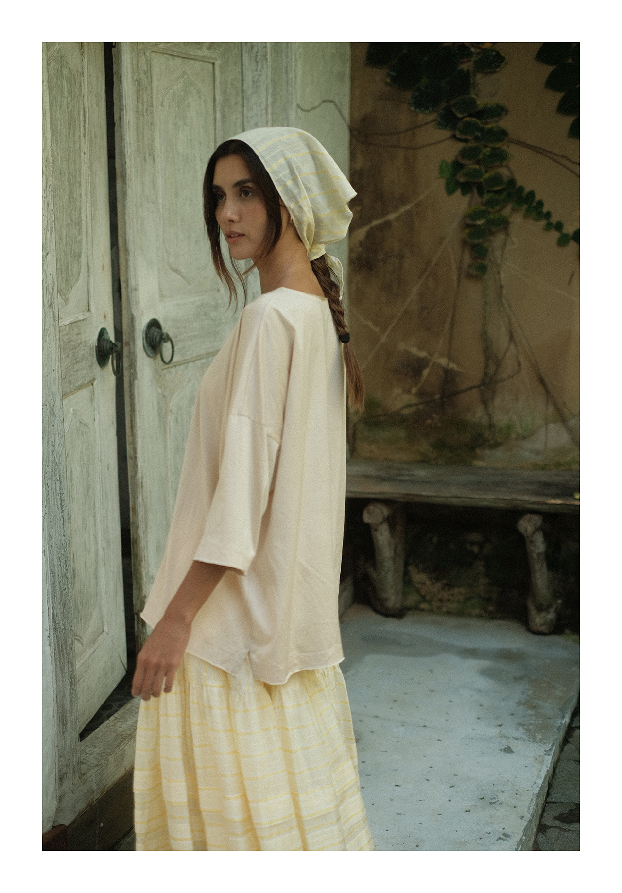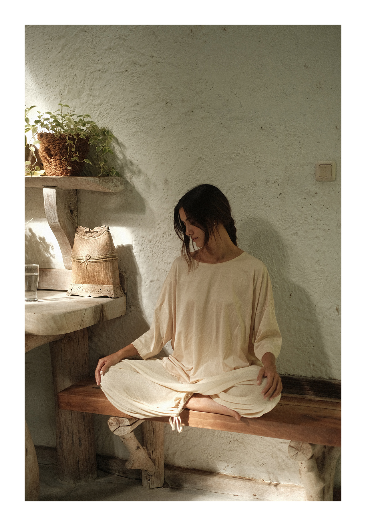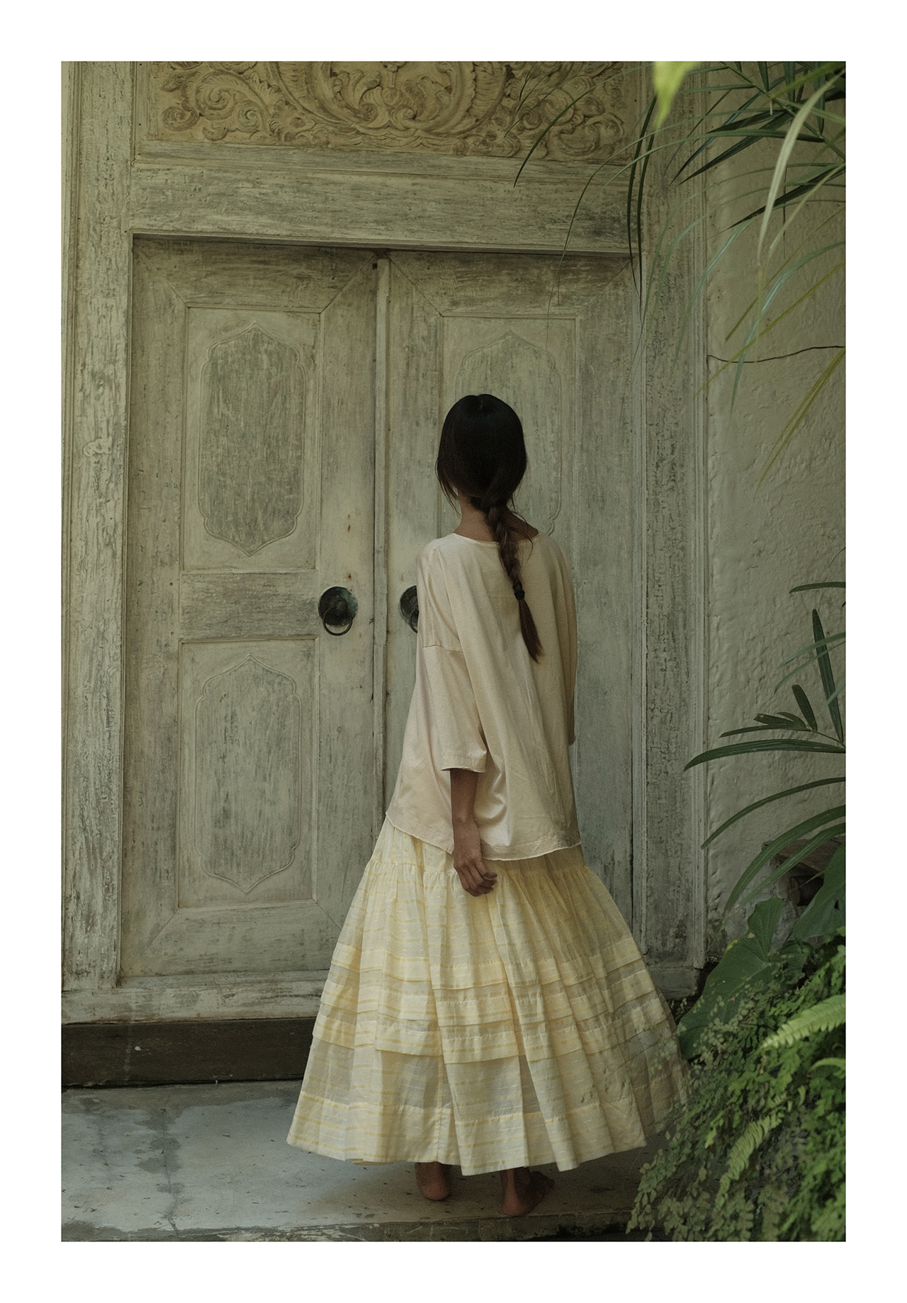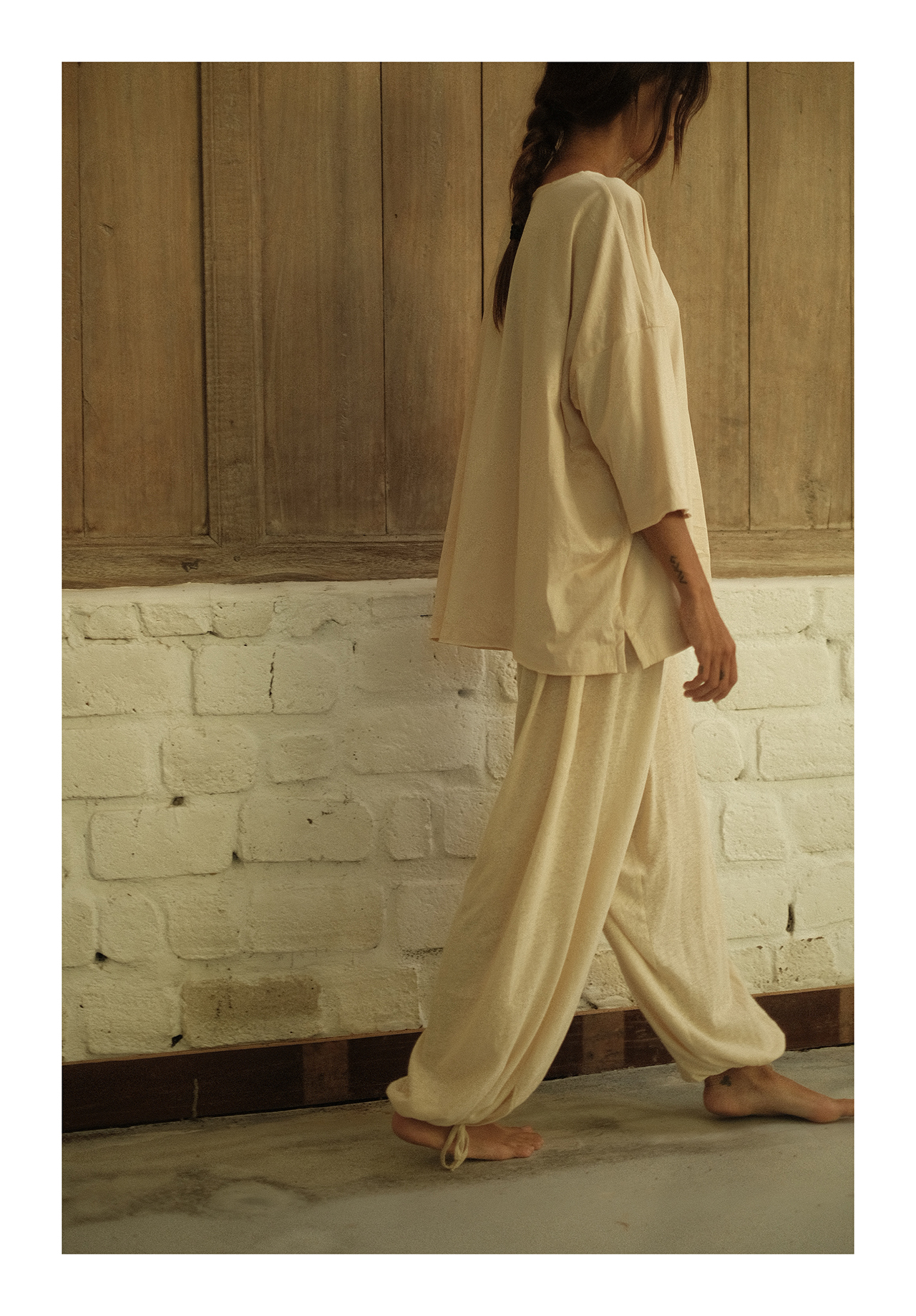 匹马棉桑蚕丝OVERSIZE自然边T恤衫