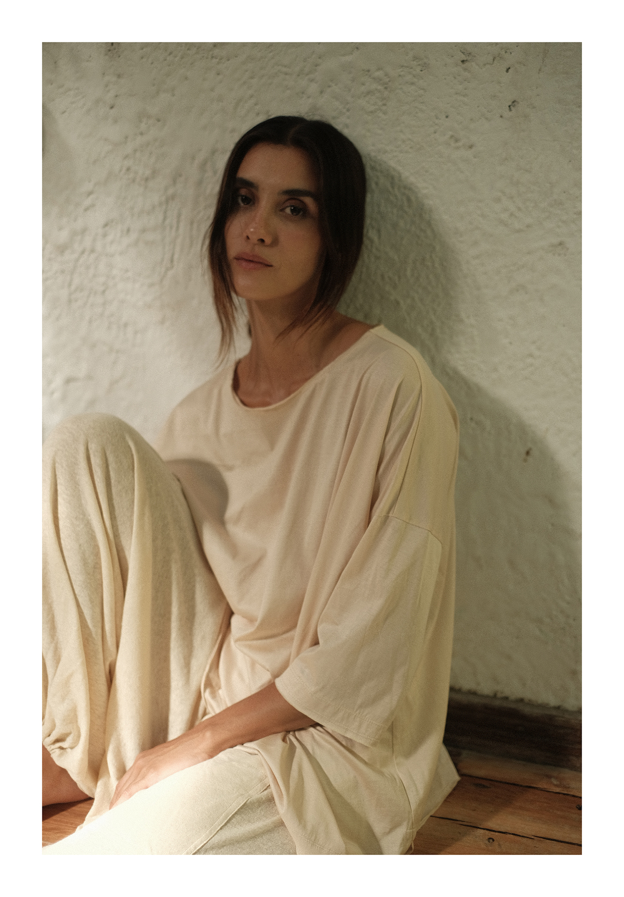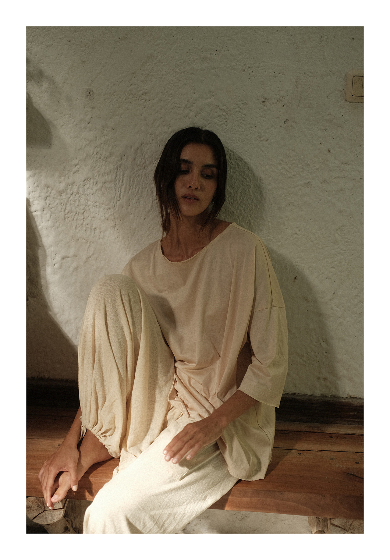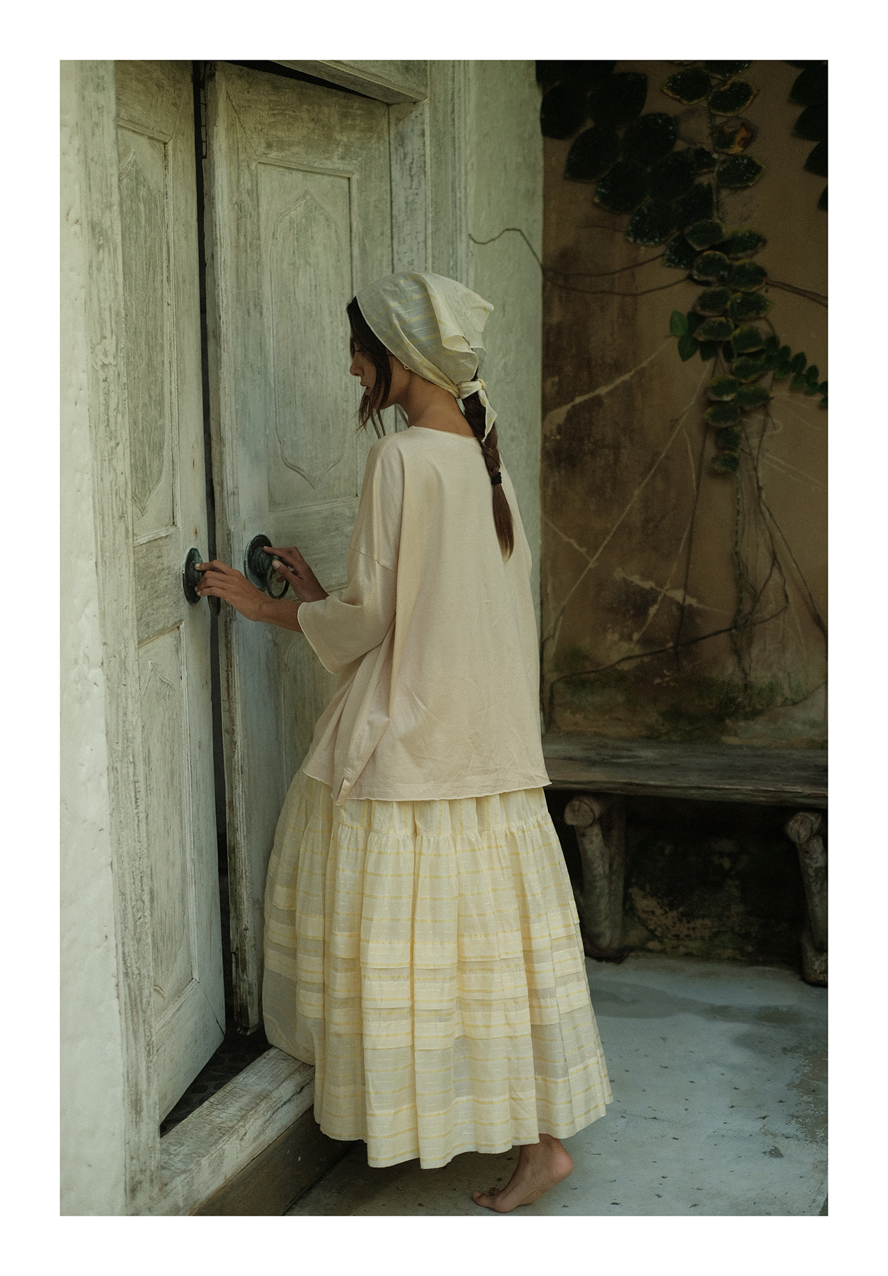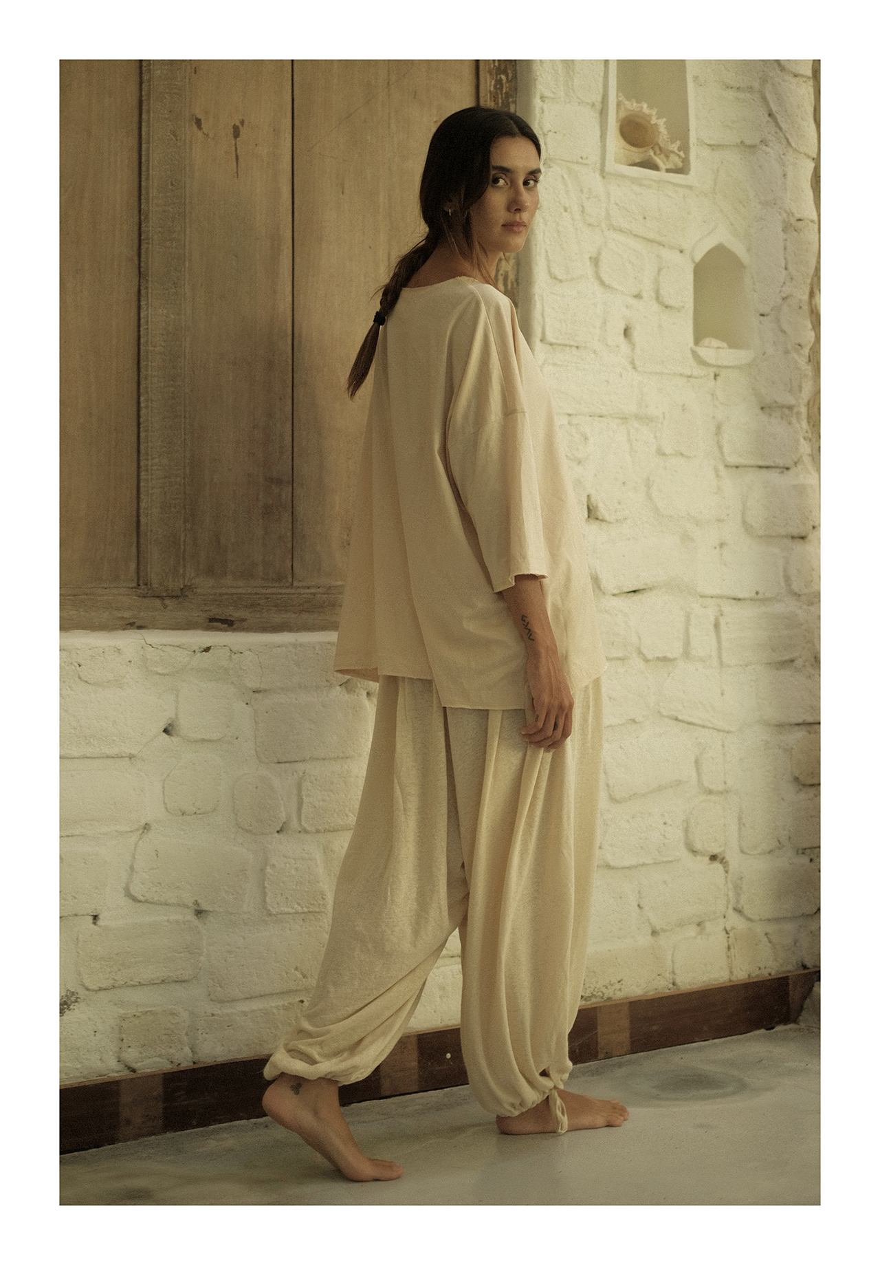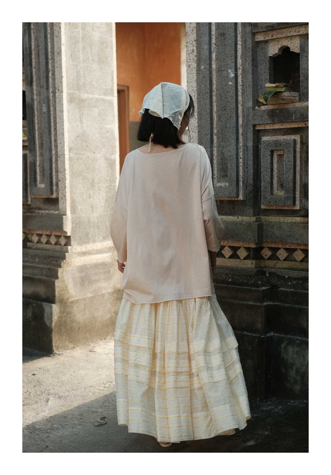 匹马棉桑蚕丝OVERSIZE自然边T恤衫