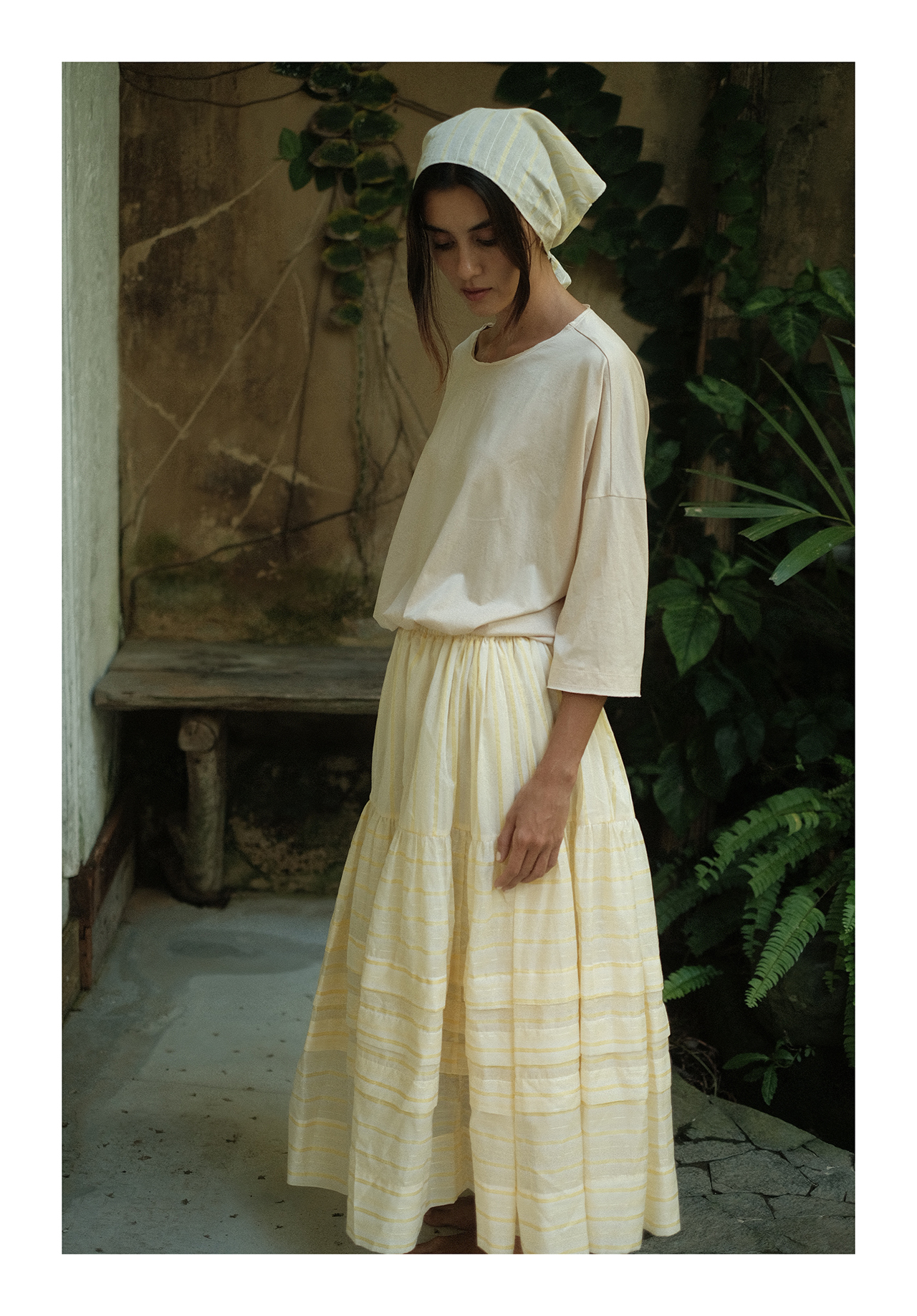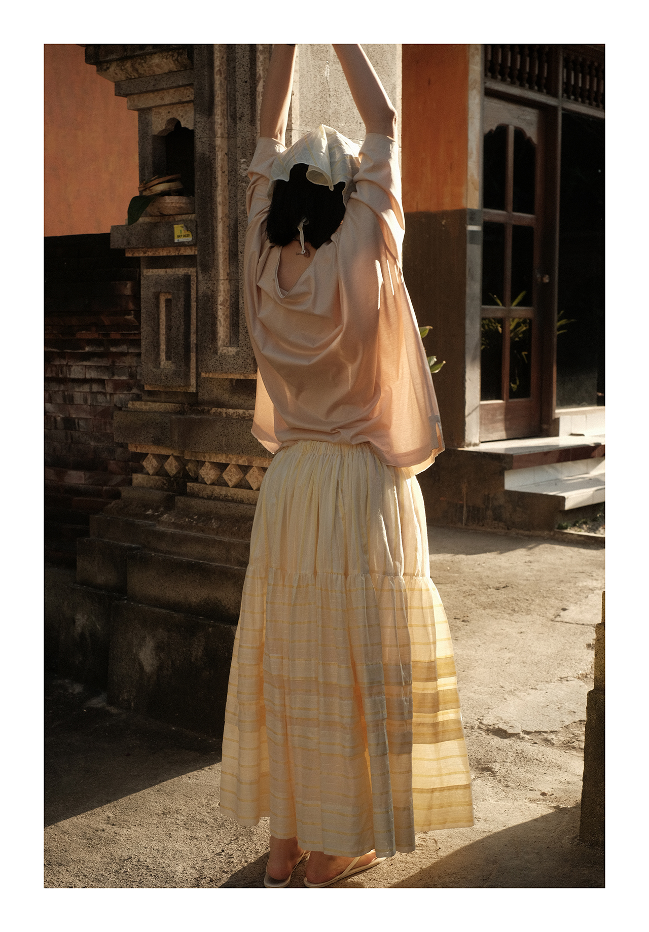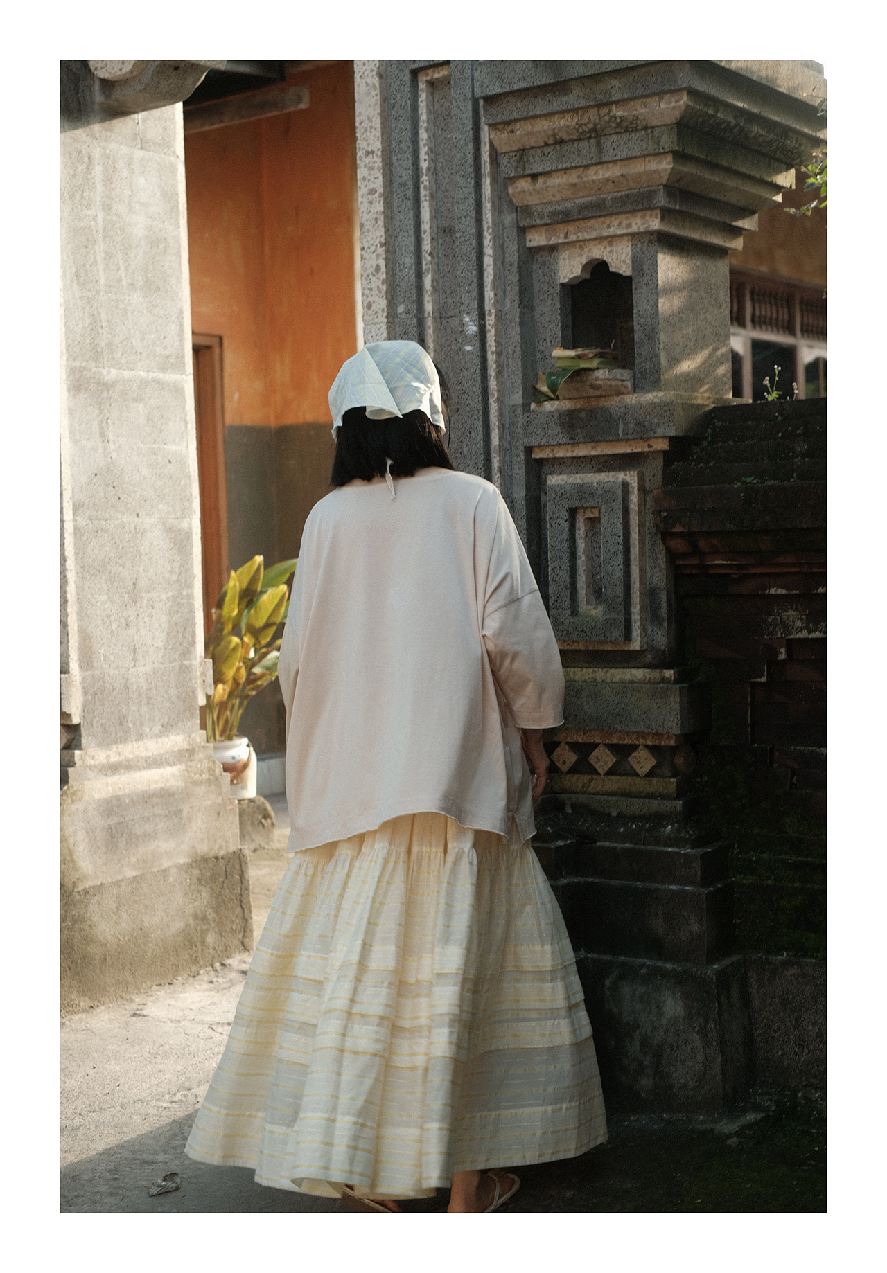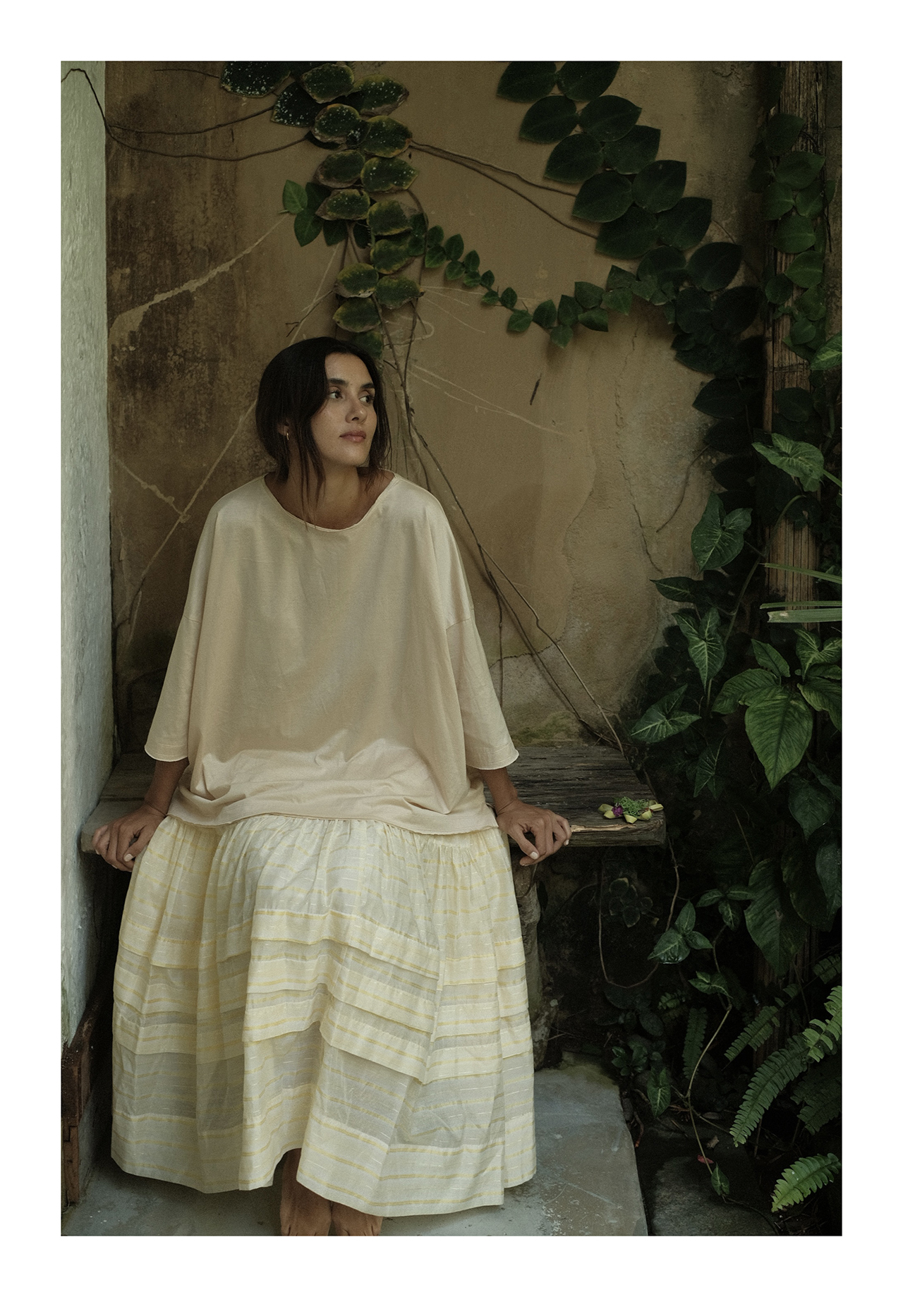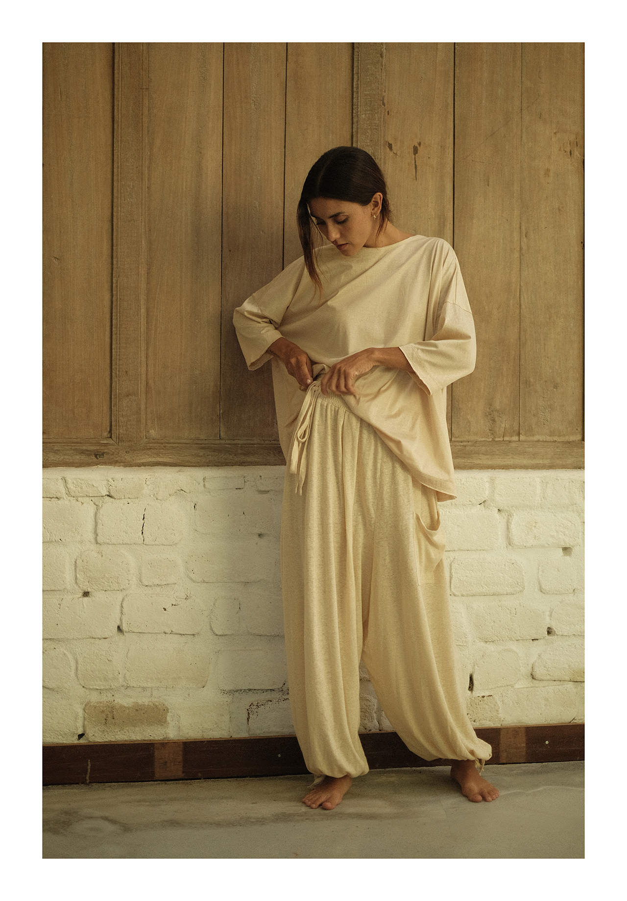 匹马棉桑蚕丝OVERSIZE自然边T恤衫