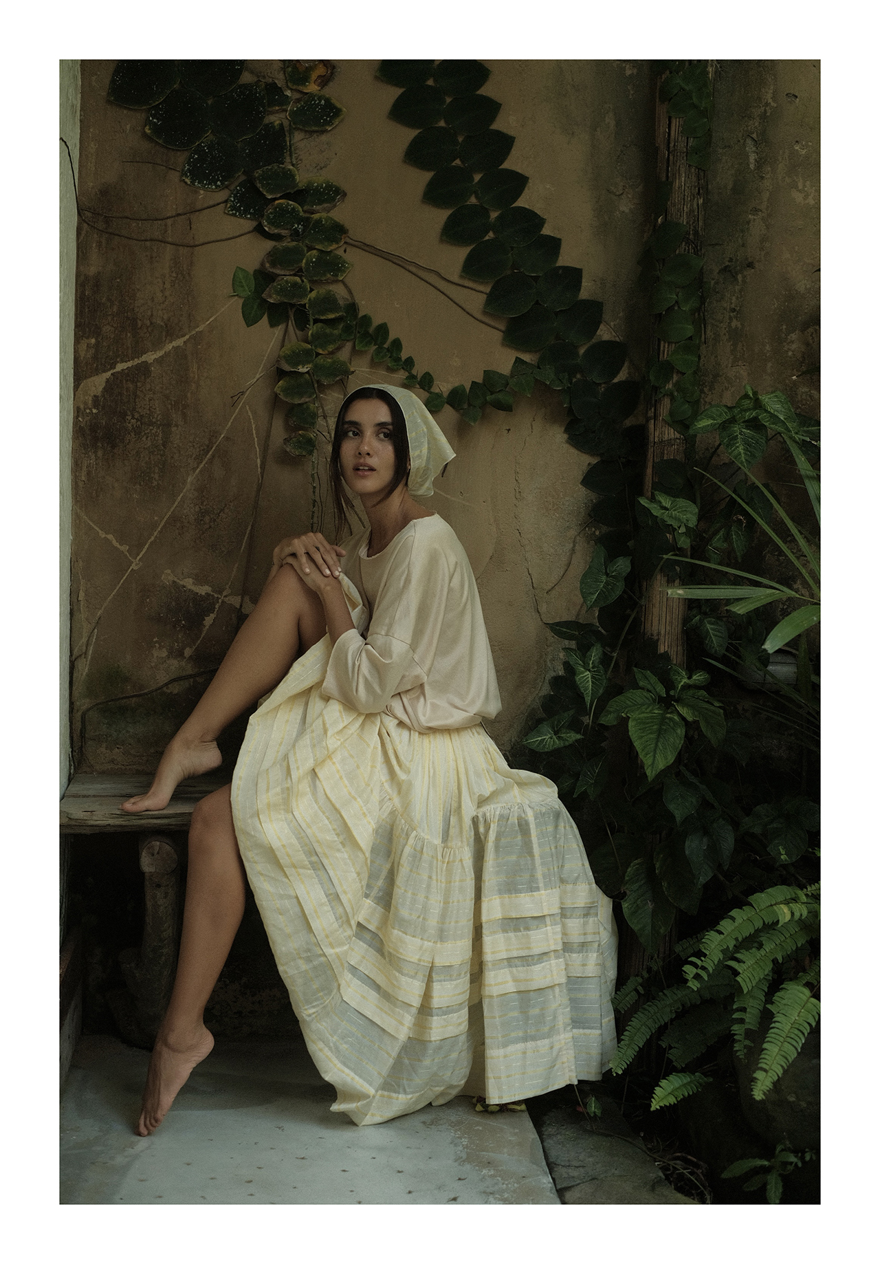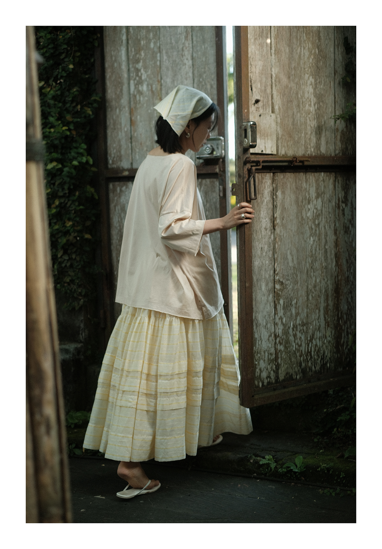 草枕 - 月白色花朵刺绣棉质背带大摆裙
