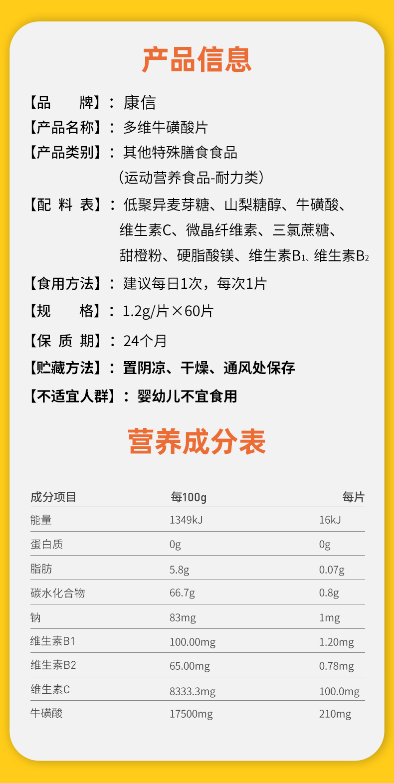 【买2送2再减10元】多维牛磺酸片清纯口感味蕾满足每天一片