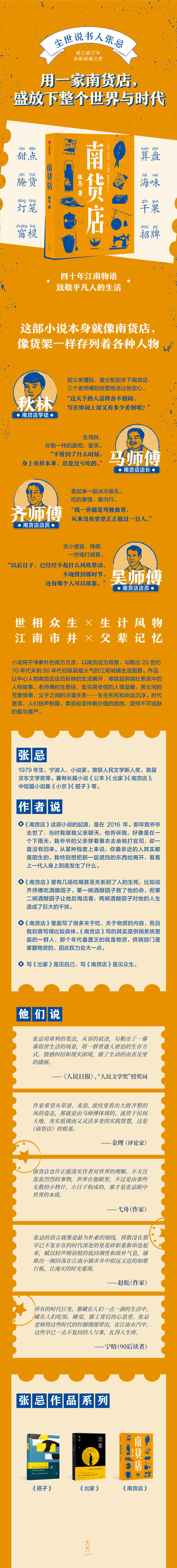 1、首届京东文学奖得主张忌2020年全新超越之作。一部有关时代巨变下江南百姓生活命运的重磅长篇作品。四十年江南物语,致敬平凡人的生活。