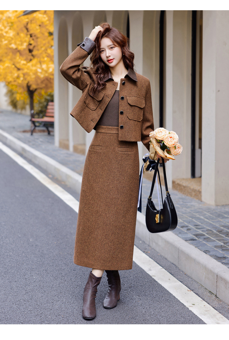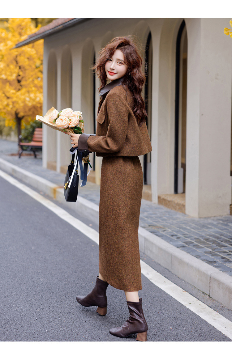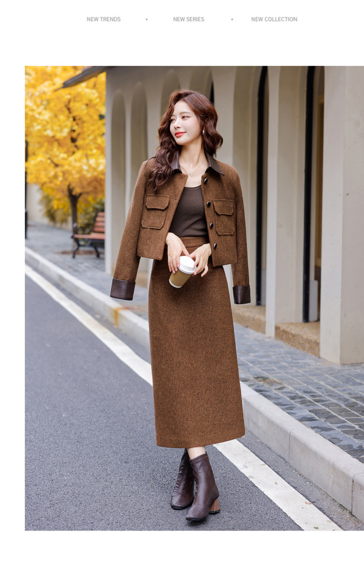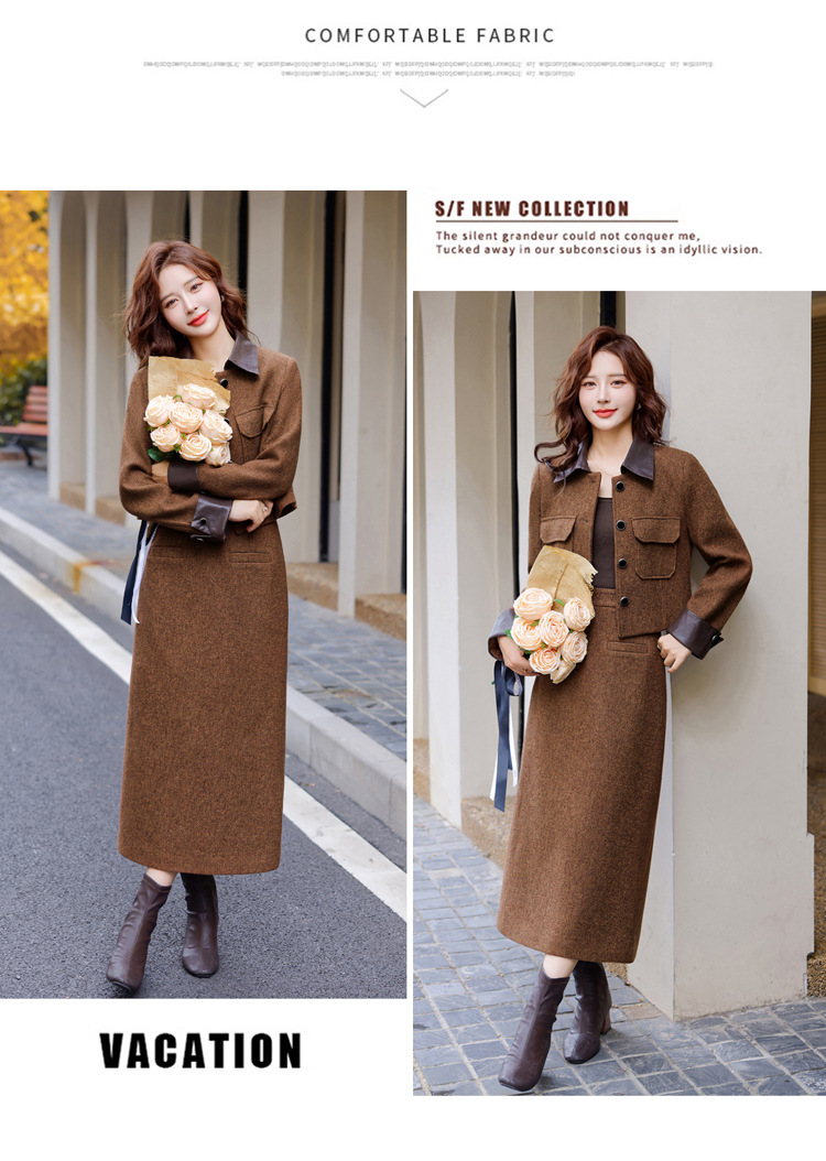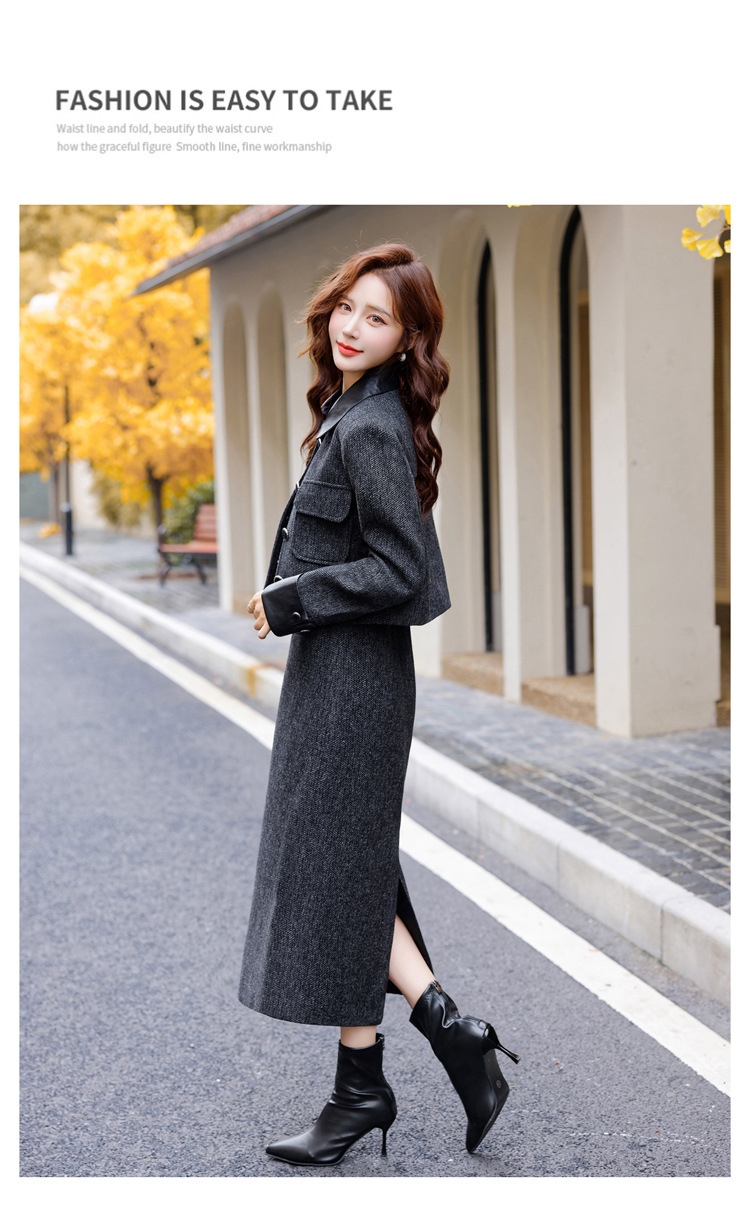 HR-YJLY1336A气质穿搭时尚套装裙新款秋季法式高级感女神范套装拼接pu皮两件套