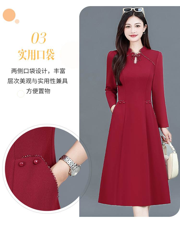 QYMTYH-99H209 -Y新中式国风复古旗袍连衣裙女2025年秋季新款红色礼服裙 商品图3
