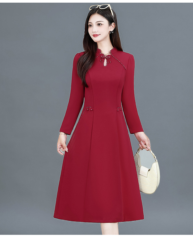 QYMTYH-99H209 -Y新中式国风复古旗袍连衣裙女2025年秋季新款红色礼服裙