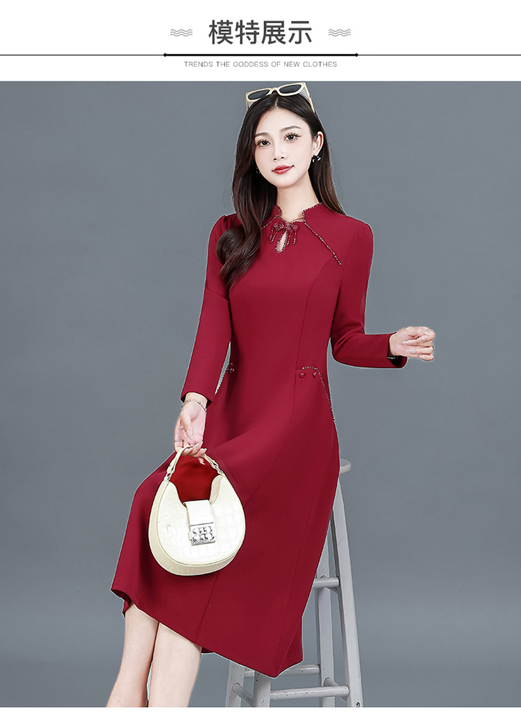 QYMTYH-99H209 -Y新中式国风复古旗袍连衣裙女2025年秋季新款红色礼服裙 商品图0