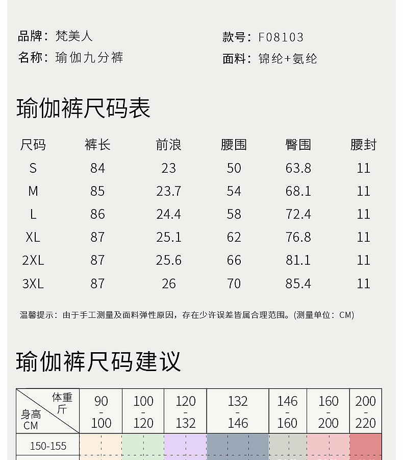 梵美人 F08103L 瑜伽九分裤 裸感