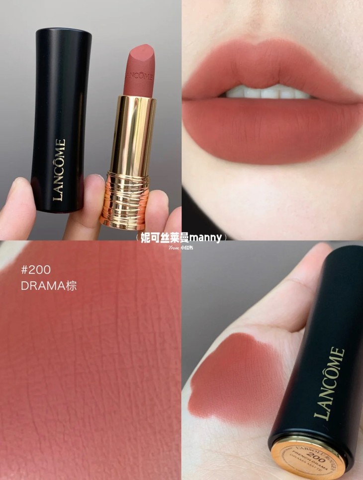 👑兰蔻菁纯小蛮腰DRAMA玩色系列口红#200 👍兰蔻黑管新色DRAMA玩色系列来了!棕调为底色,调入明亮色,更适合亚洲肤色! 💋新升级的哑光质地一如既往的顺滑好抹! 🎀#200清冷裸粉棕这支很抗打!冷茶棕里头透着裸粉调,很高级的颜色~ 🌺薄涂日常提气色,厚涂御姐气质!夏日纯野感满满!