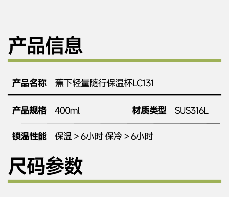 【25年新品】Beneunder户外轻量随行保温杯LC131