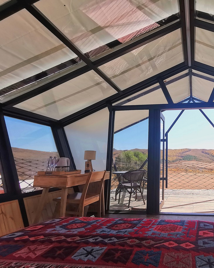 郑和星空大床房:50平米,1.8*2米 大床,可容纳2人,独卫,可洗浴,露台,双早,WIFI,可以看到星空,玻璃房顶