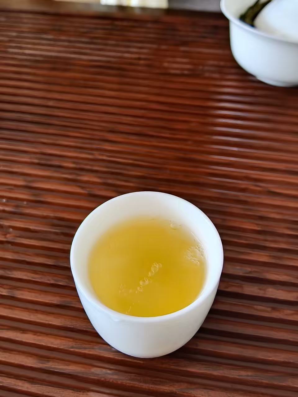 再品:三泡后茶气渐显,两颊生津如泉涌,喉韵清凉深邃,回甘中隐现冰糖甜韵,如置身雪山溪畔。