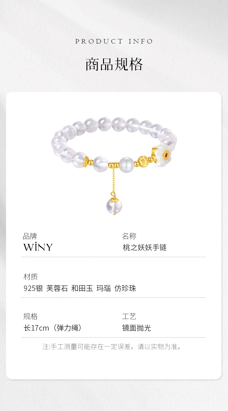 Winy925银桃之妖妖和田玉手链配证书送女友闺蜜节日礼物
