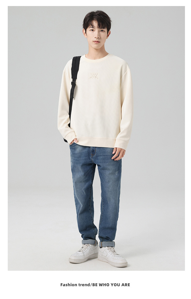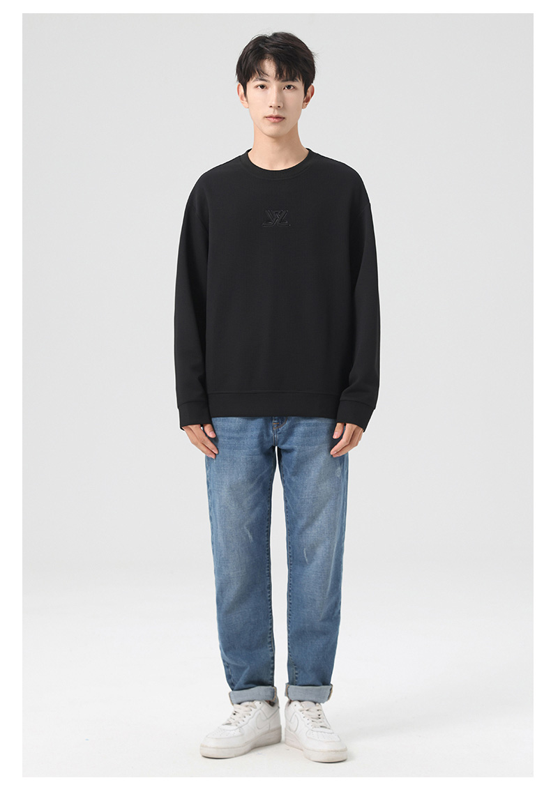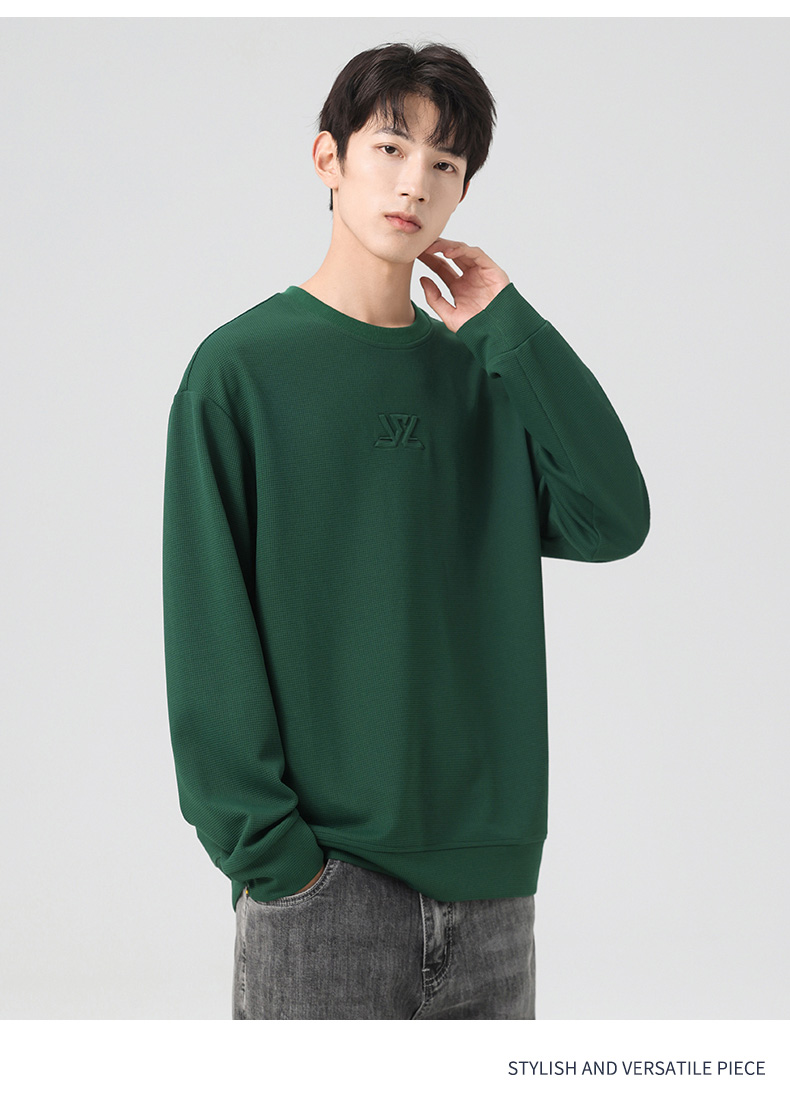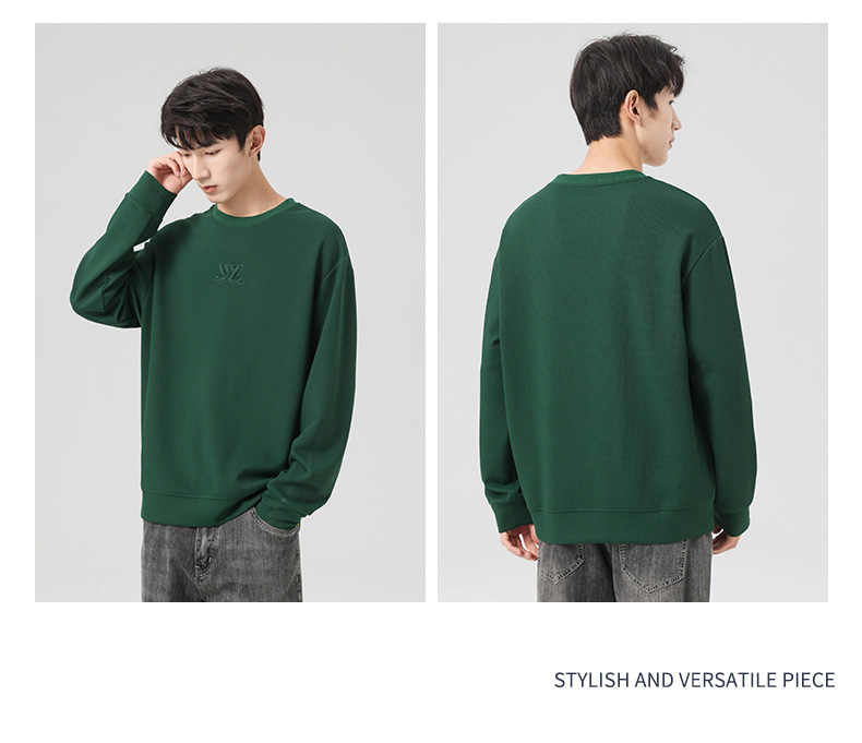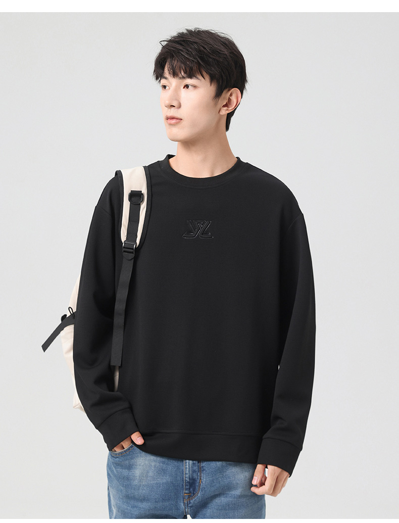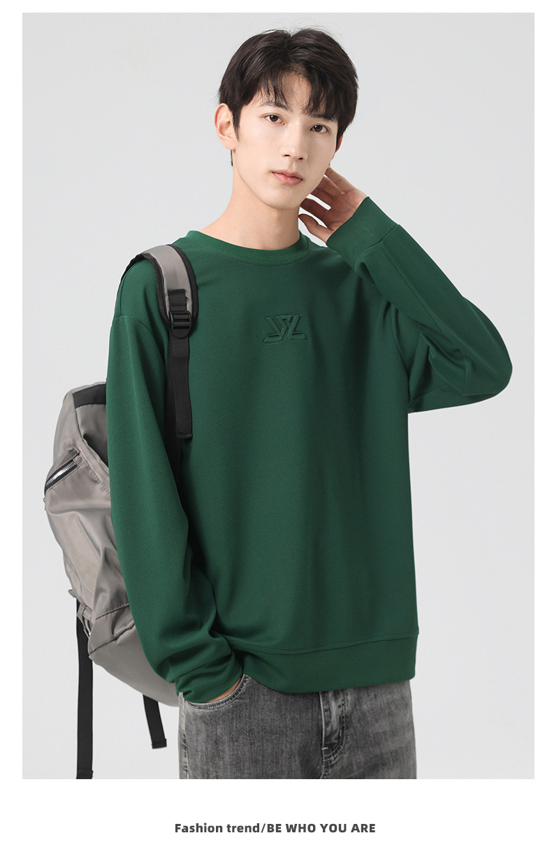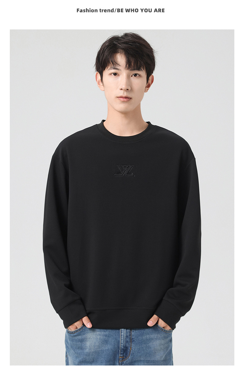 【Q】【新款DSL】大依优型大码圆领卫衣肌理感长袖加肥加大胖子上衣男士T恤肥佬打底男装