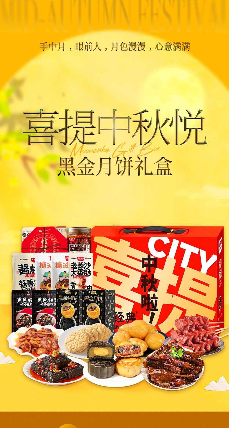 【中秋礼盒】黑色经典2024喜提中秋悦黑金月饼特产礼盒 中秋送礼员工福利伴手礼 支持团购