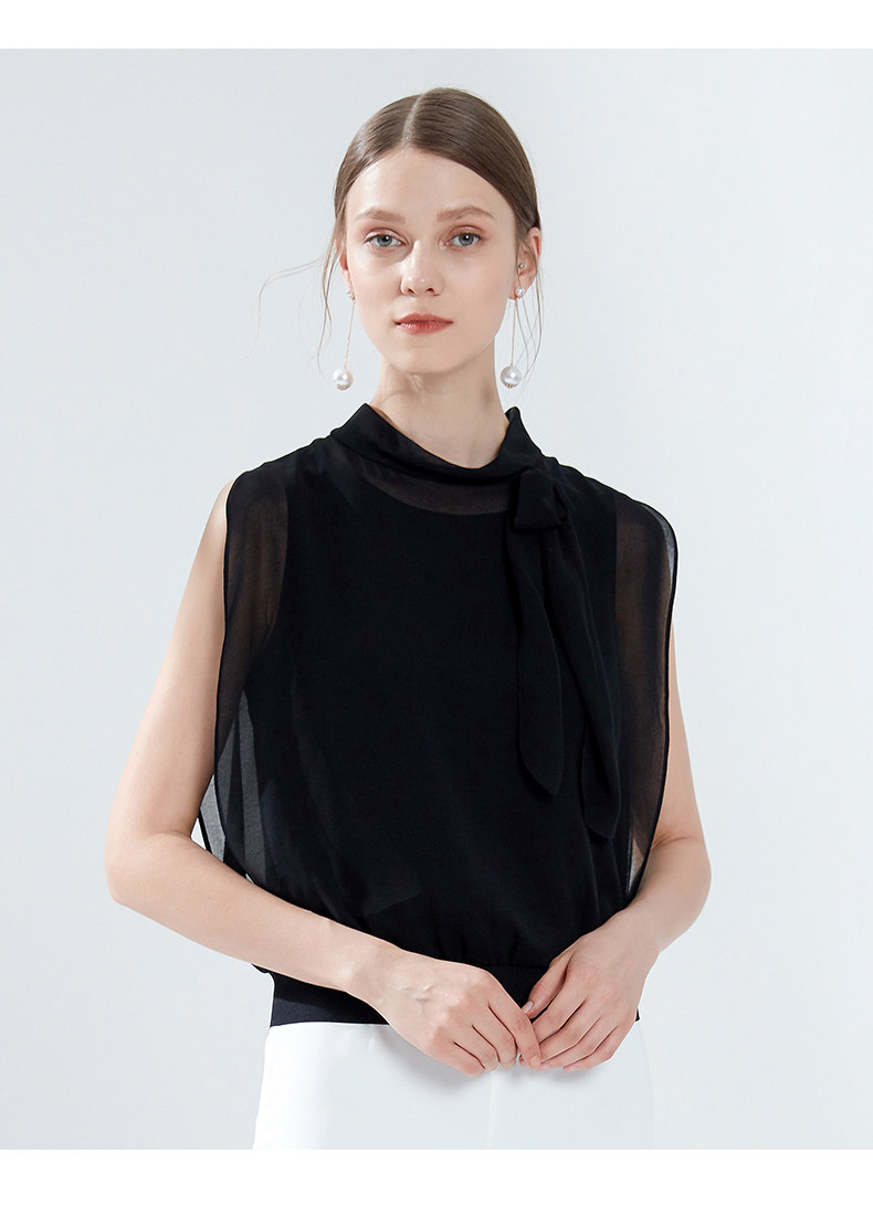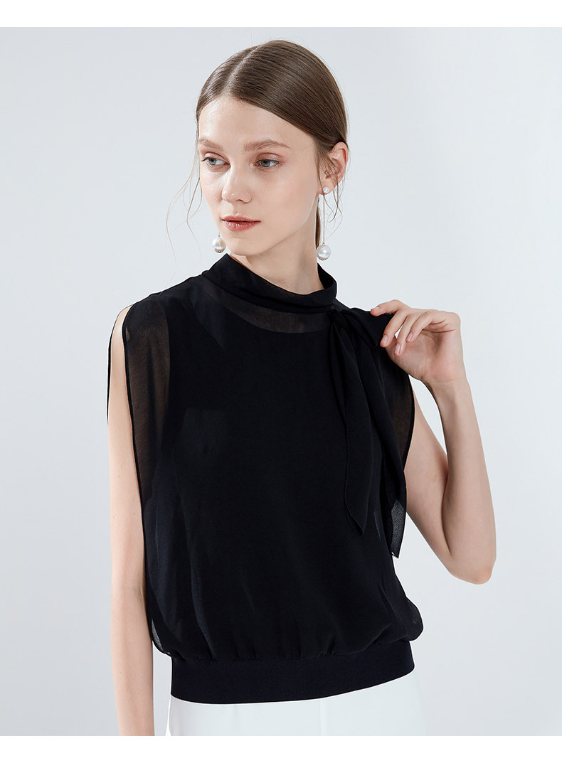 EITIE爱特爱女装夏季新款领口系带无袖简约时尚衫小上衣5713438