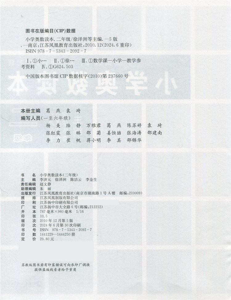 2024年 2年级 小学奥数读本 二年级 小学数学奥数思维提优 含参考答案 数学教学参考 江苏凤凰教育出版社