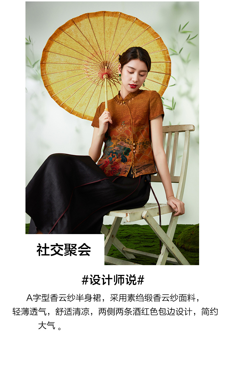 【香云纱】乔万尼半身裙100%真丝桑蚕丝新中式设计EM2D783