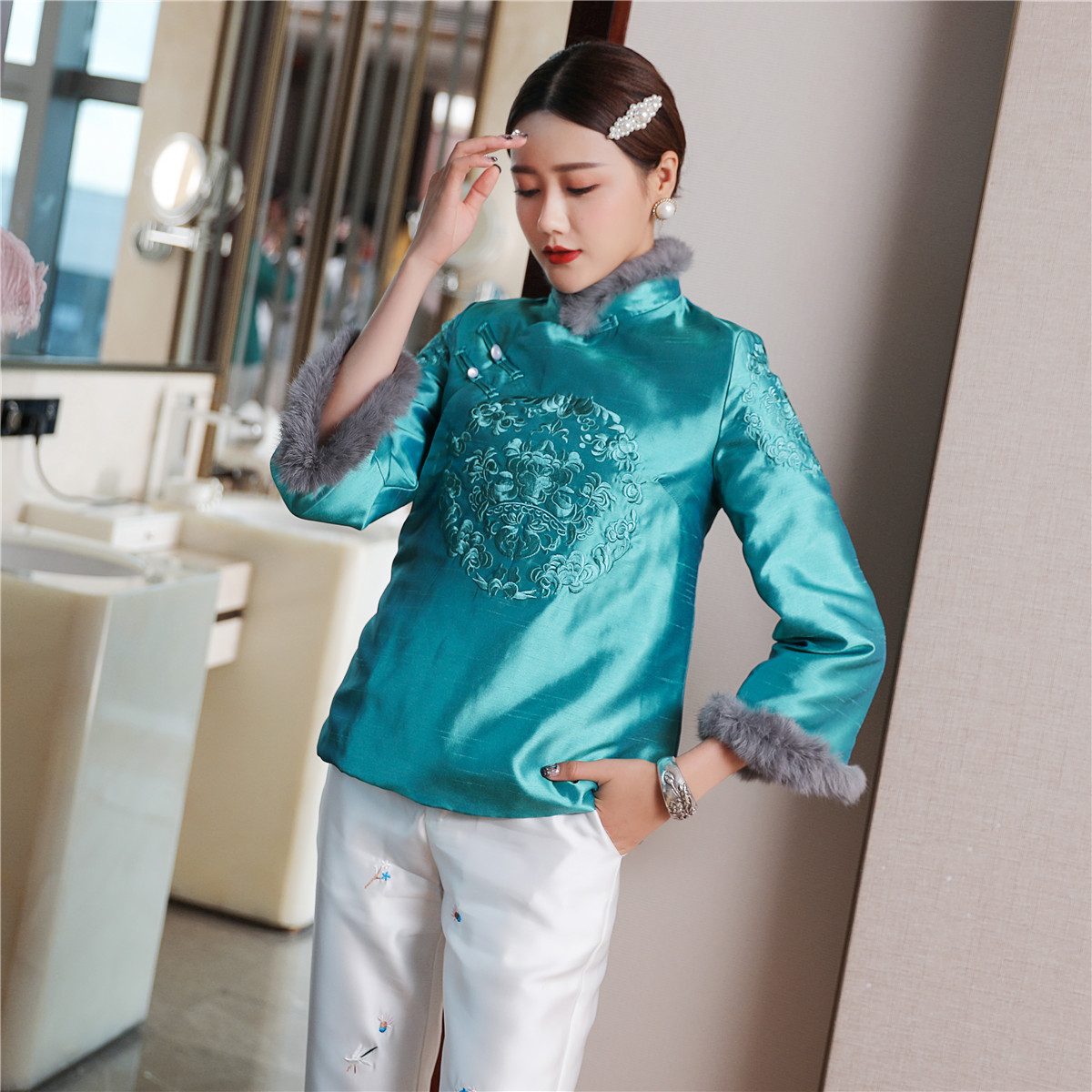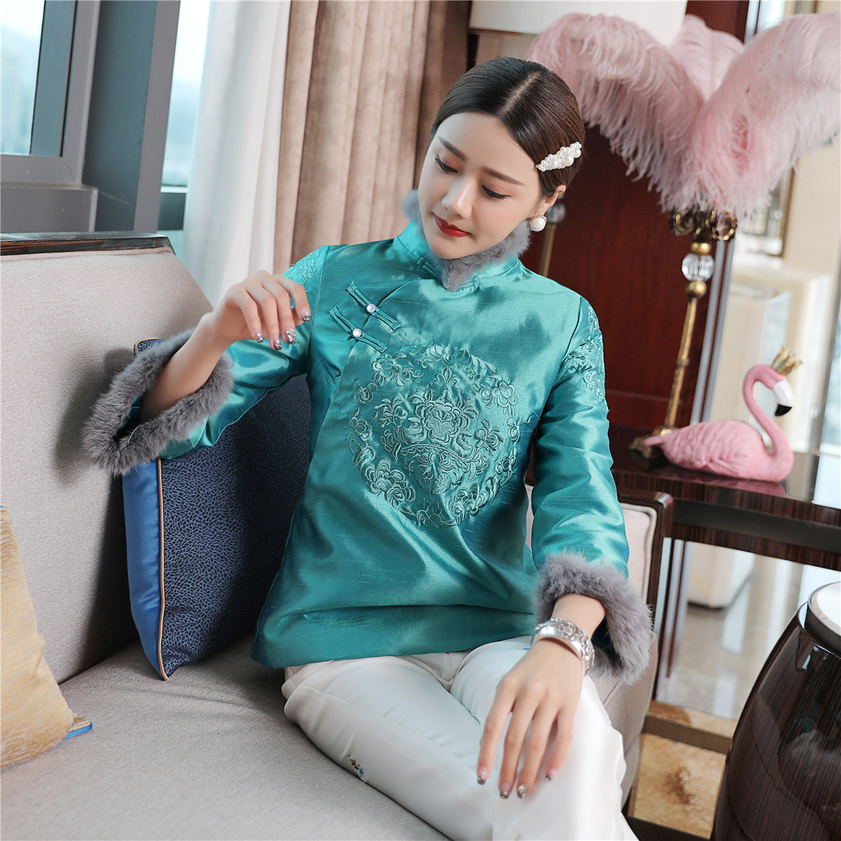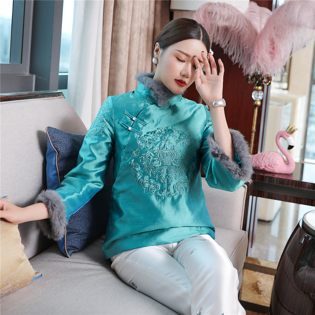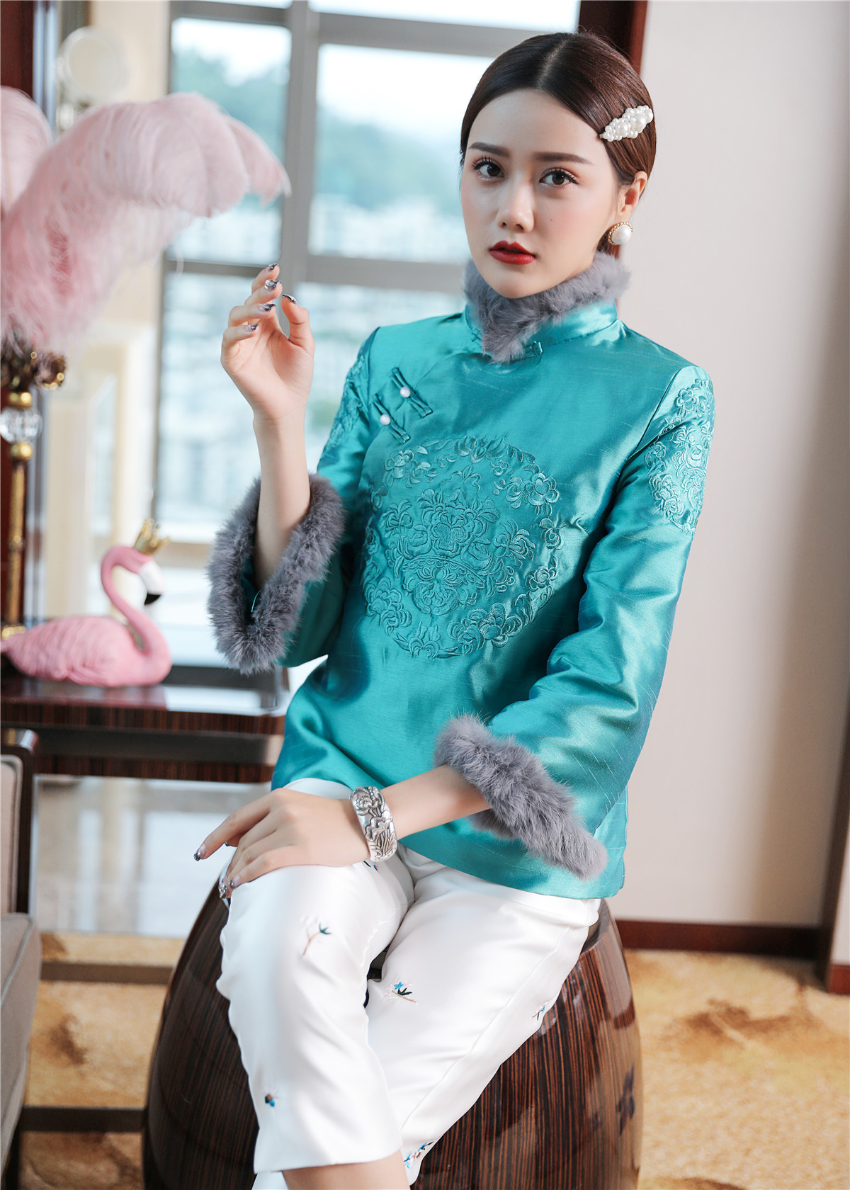 QZ-19022秋冬团花刺绣中式国风改良旗袍上衣