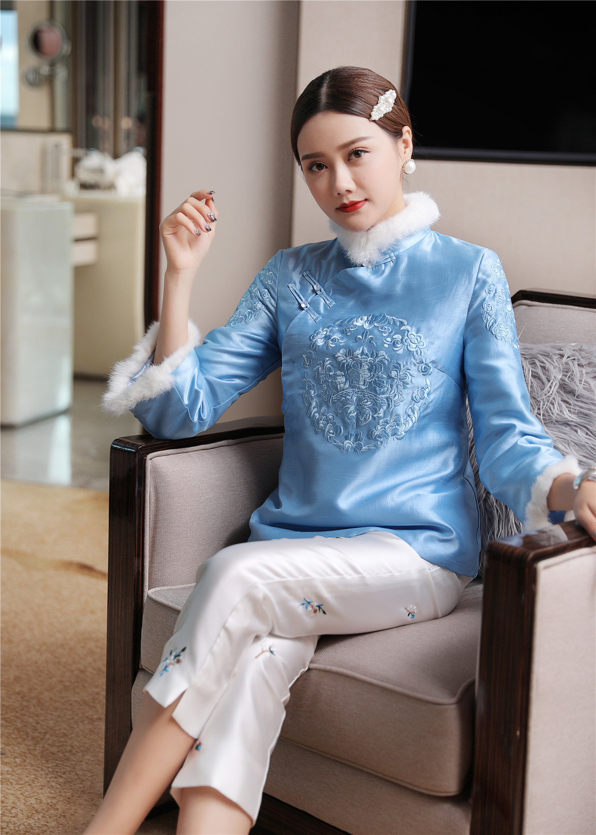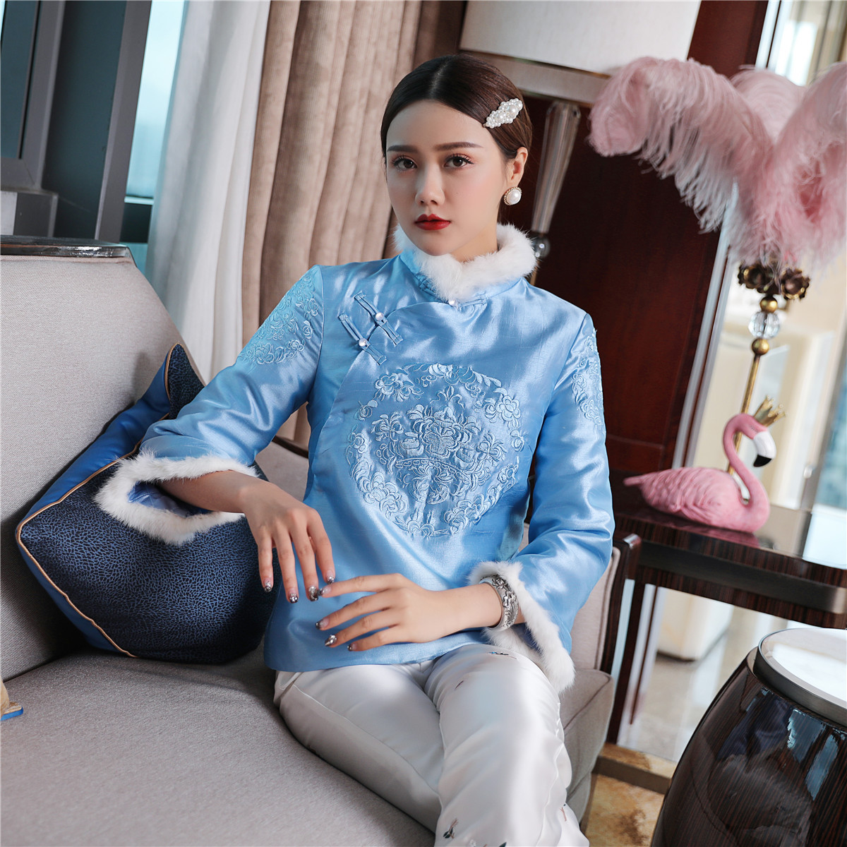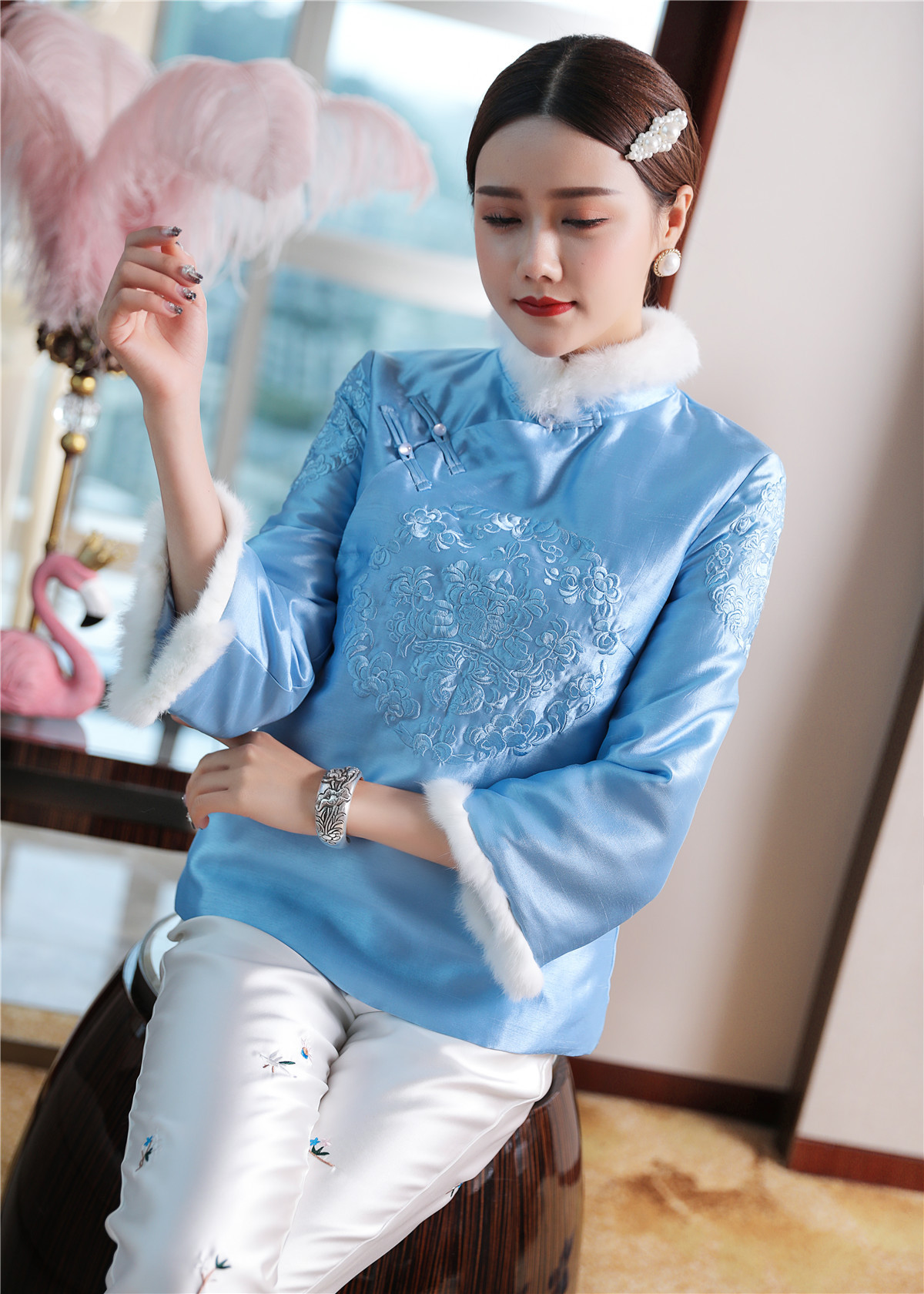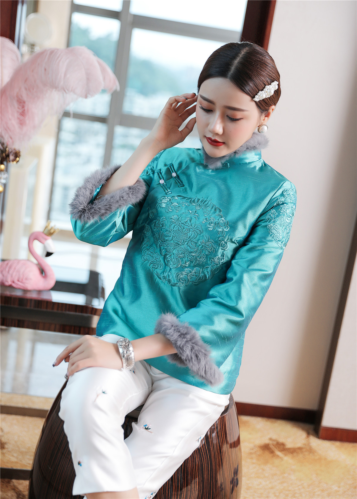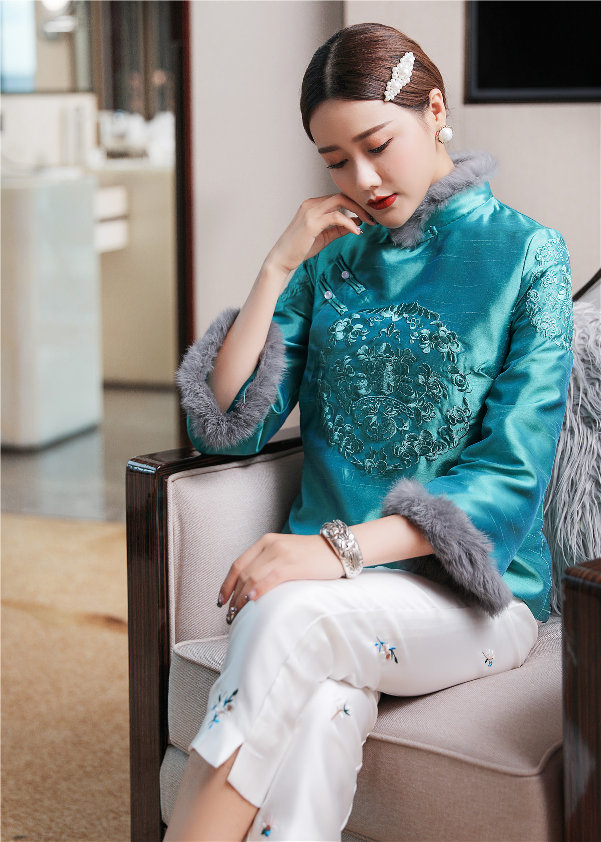 QZ-19022秋冬团花刺绣中式国风改良旗袍上衣