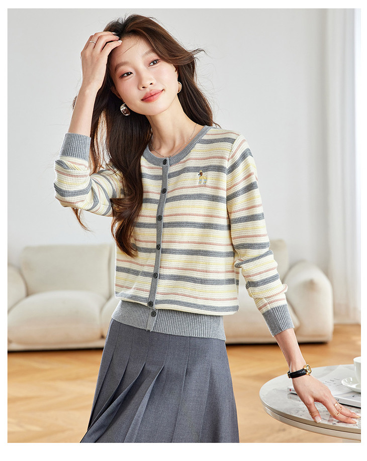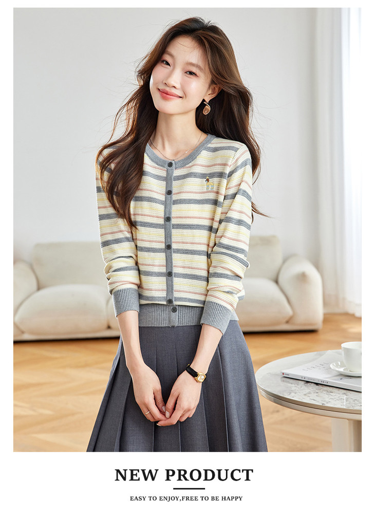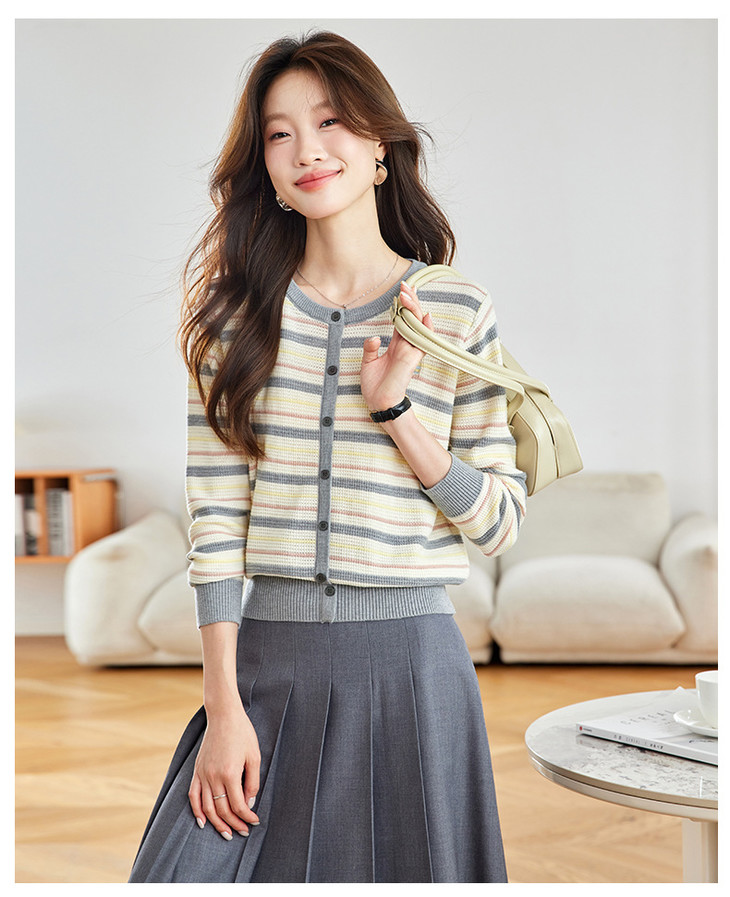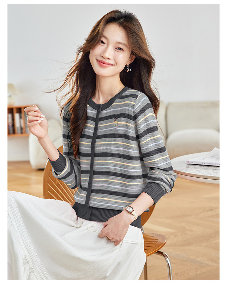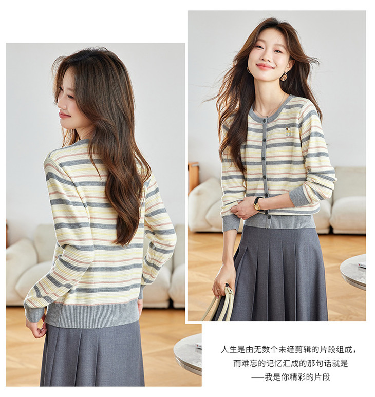 条纹针织套头,chic毛衣外穿长袖休闲上衣CC-27-25117