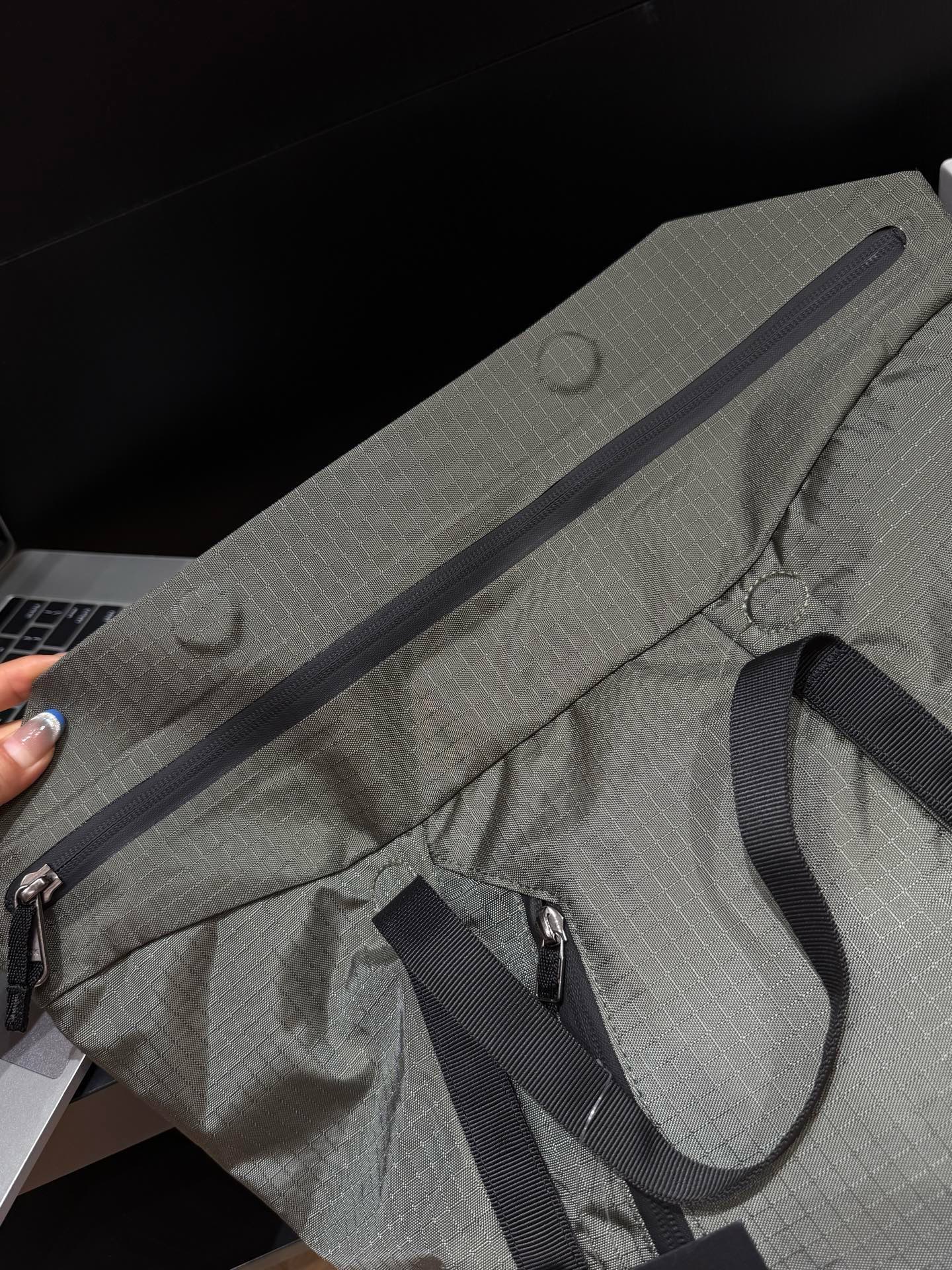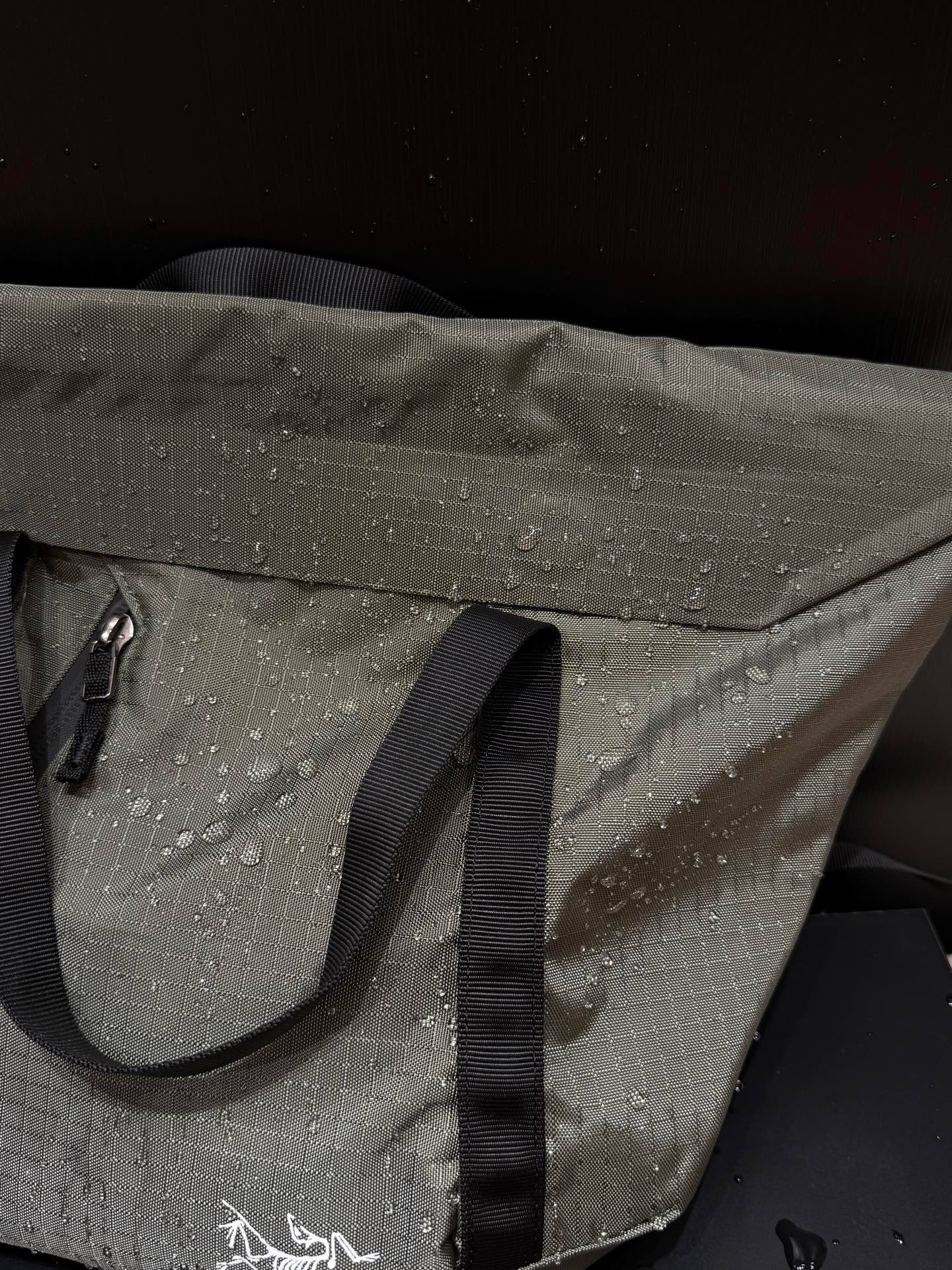 面料是有一定的挺括度的 耐磨耐造抗撕裂 ,整个包包的有型感全靠面料来支撑!感受一下它的超强防水性吧 无惧风雨!