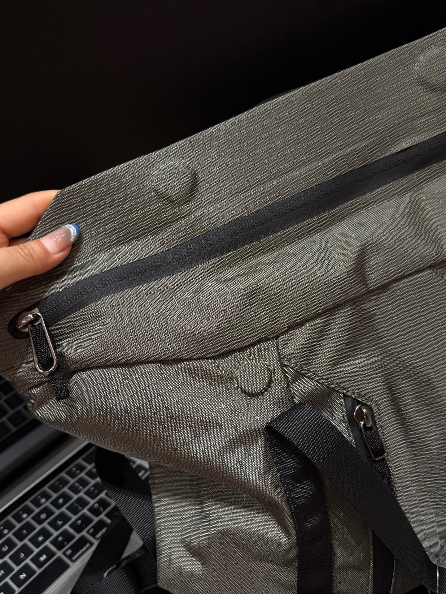 客供尼龙防水面料,表面有高辨识度格子纹理 自带光泽度 ,并且高韧抗撕裂 很适合户外环境 背在身上轻盈无负担! 同时面料拥有强大的防水能力,遇水即可凝结成水珠 无惧户外环境的多变 任何时刻都能给你安全感