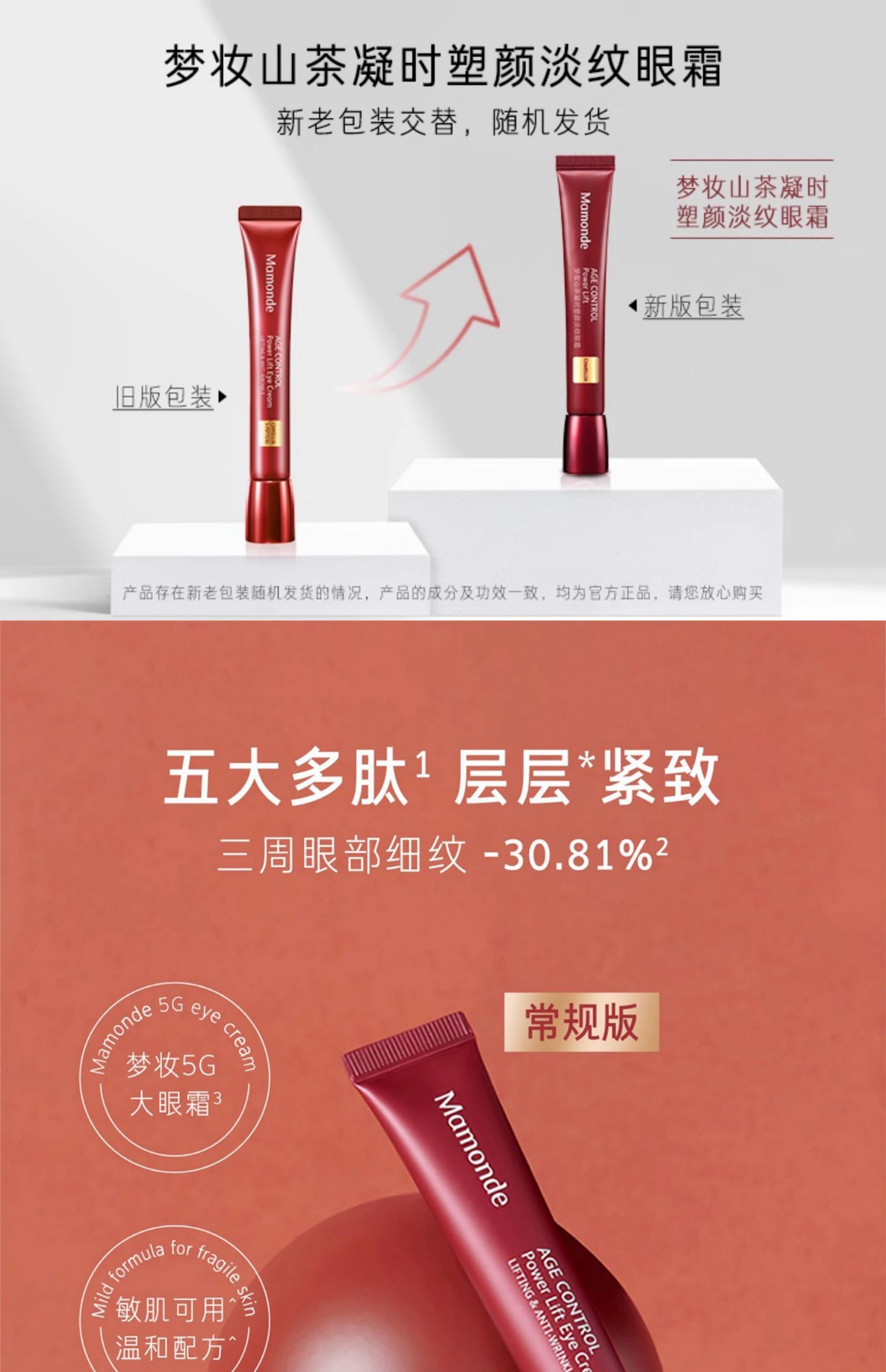 【买一送一】韩国梦妆Mamonde山茶凝时塑颜淡纹眼霜限量版22ml+替换装22ml多肽紧致淡化细纹眼袋黑眼圈补水保湿