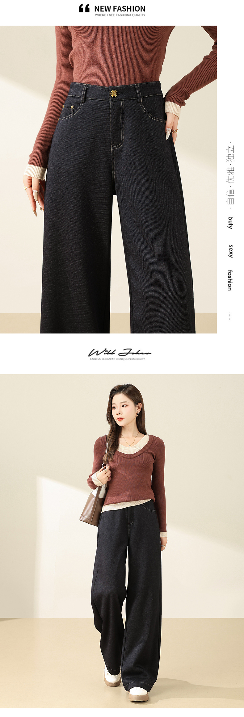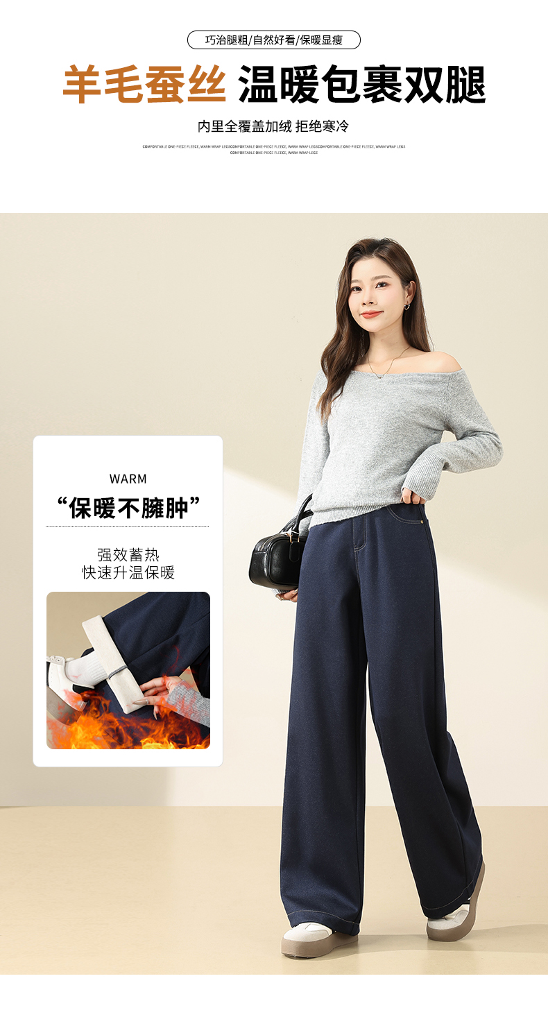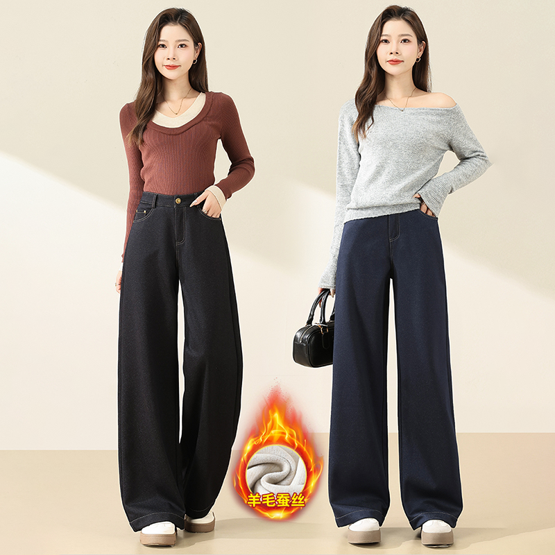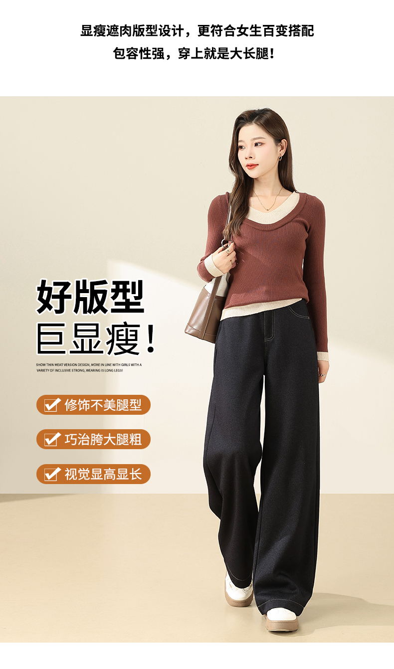 穿出“大长腿”!【亨弥--羊毛蚕丝加绒牛仔裤】舒适高腰超柔面料 羊毛蚕丝加绒内里 宽松直筒阔腿版型 不变形不鼓包不起球 上身效果显瘦遮肉 修饰腿型拉长比例 包容各种身材 时尚圈的扛把子