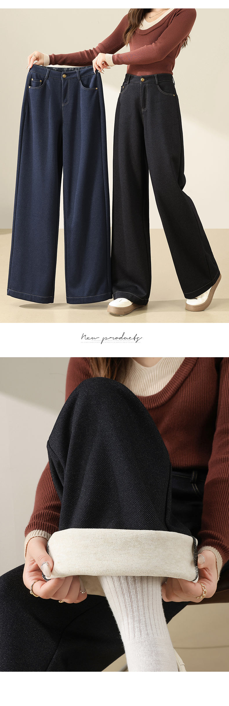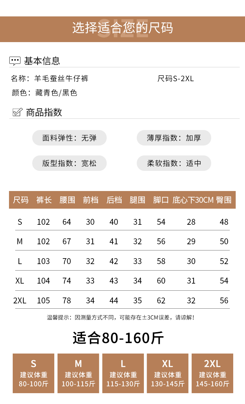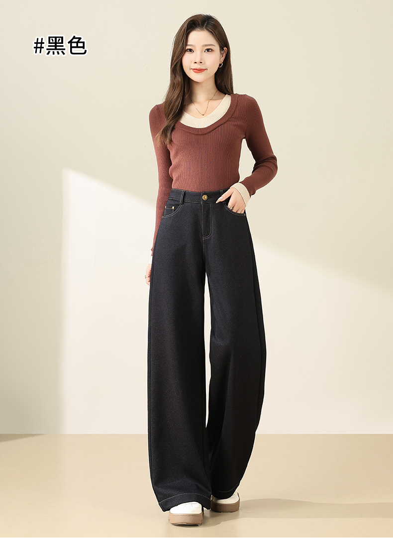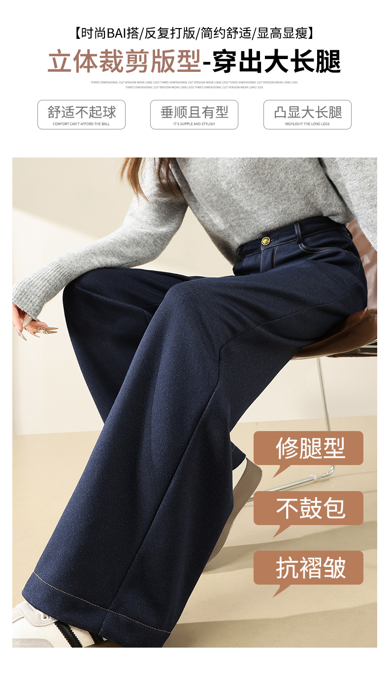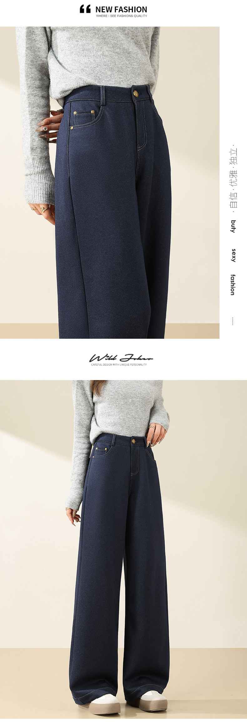 穿出“大长腿”!【亨弥--羊毛蚕丝加绒牛仔裤】舒适高腰超柔面料 羊毛蚕丝加绒内里 宽松直筒阔腿版型 不变形不鼓包不起球 上身效果显瘦遮肉 修饰腿型拉长比例 包容各种身材 时尚圈的扛把子