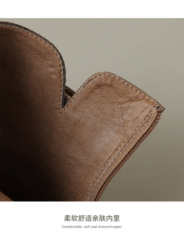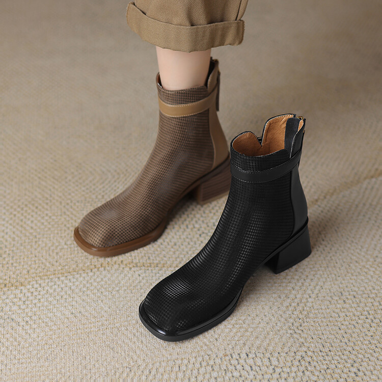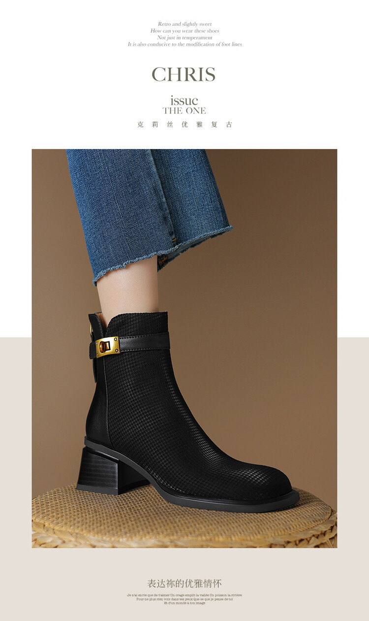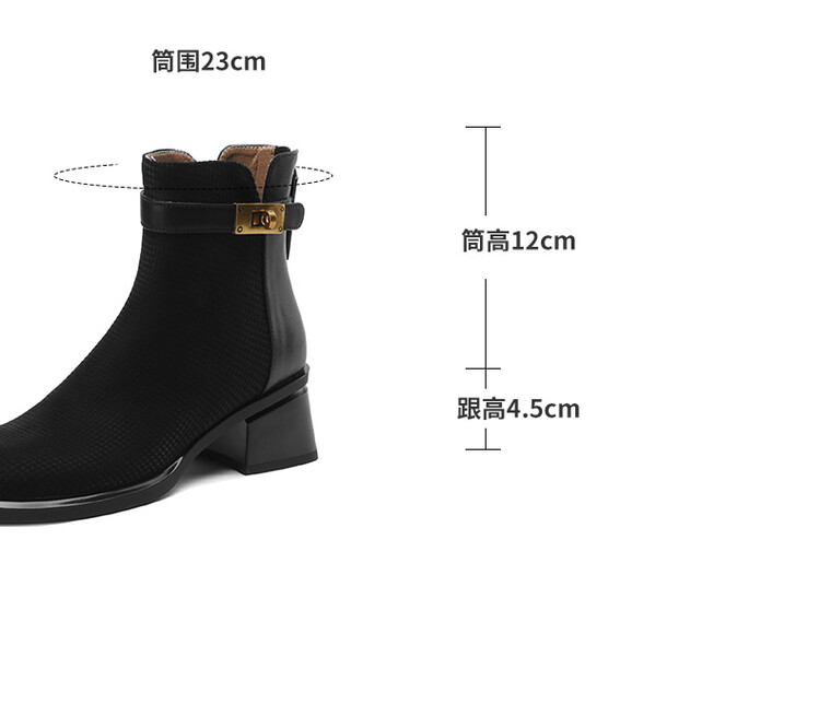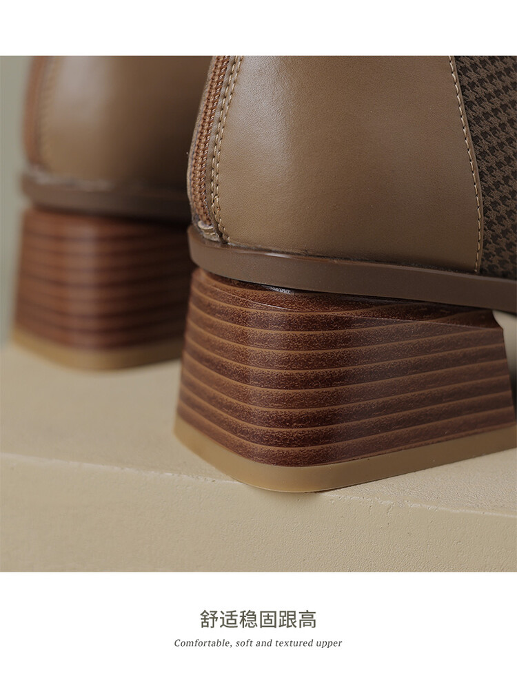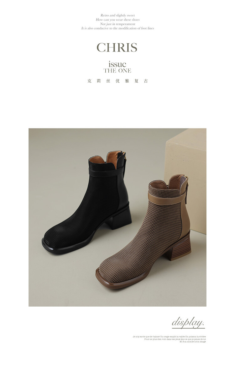 【预售5天】秋冬新款复古时尚牛皮粗跟短靴女拼接后拉链通勤马丁靴WXJFG&W8026-X