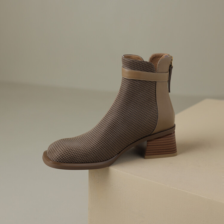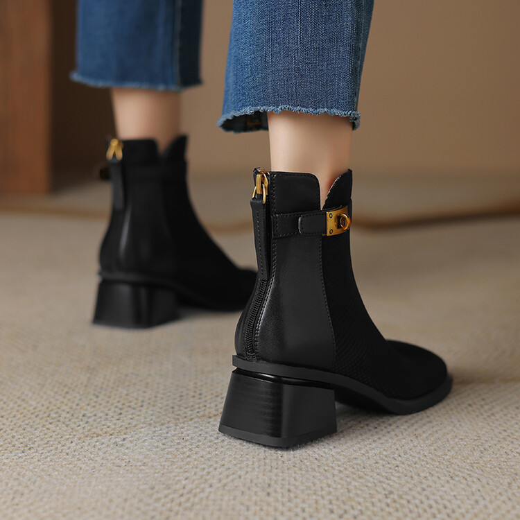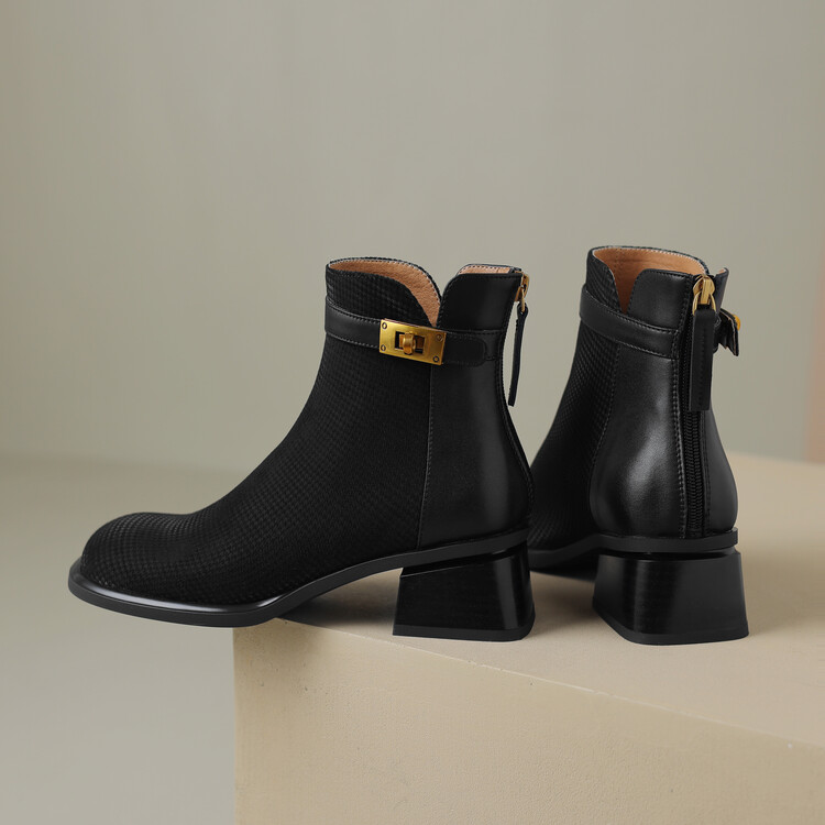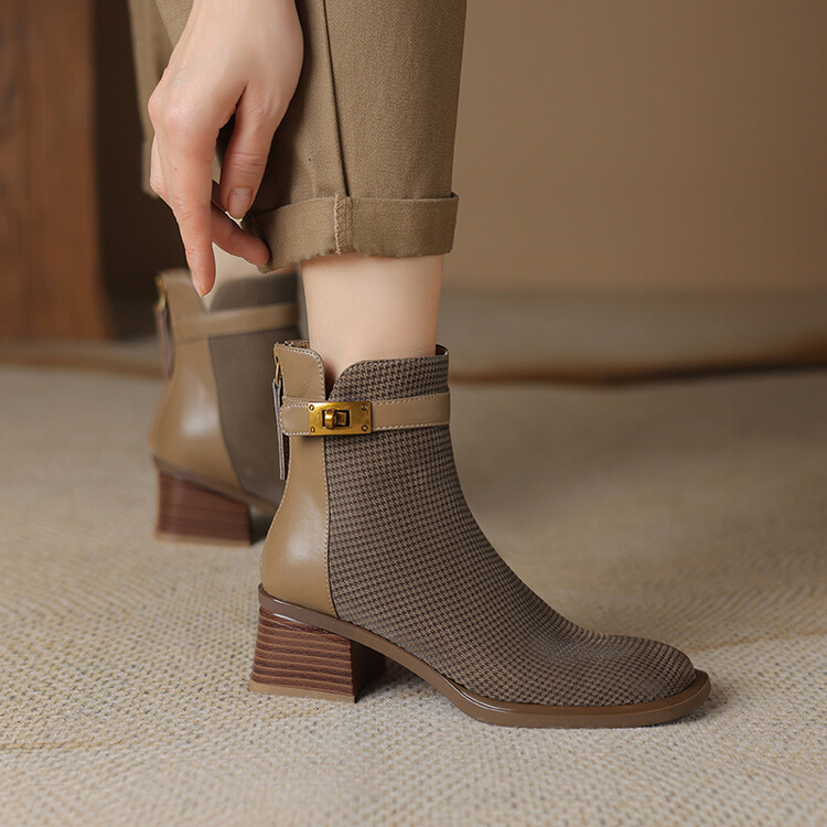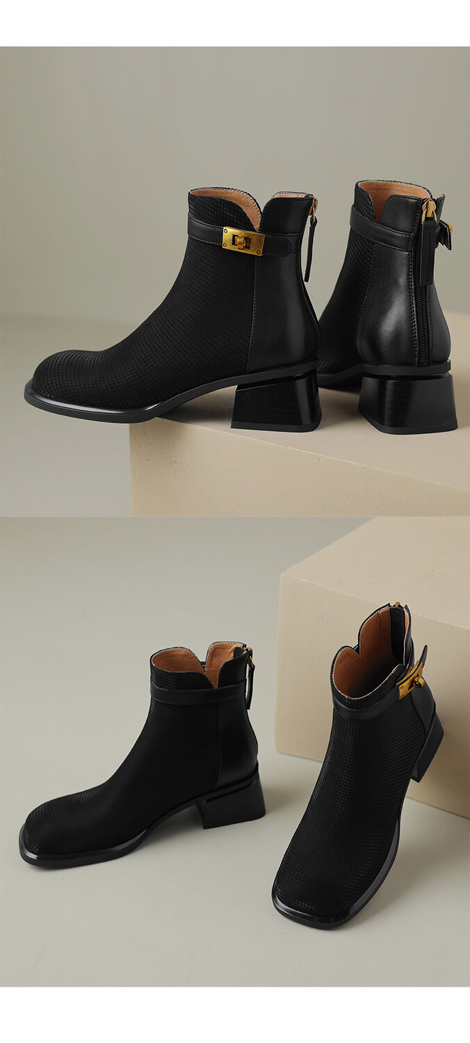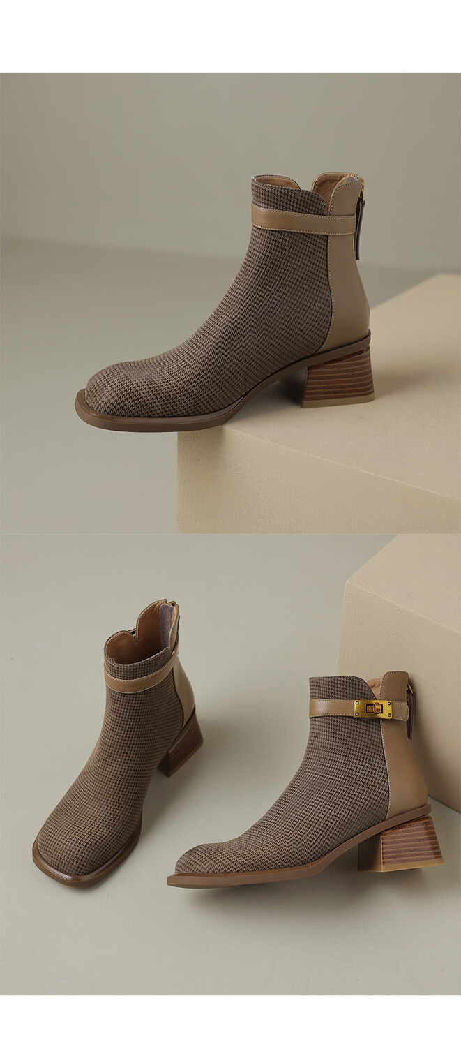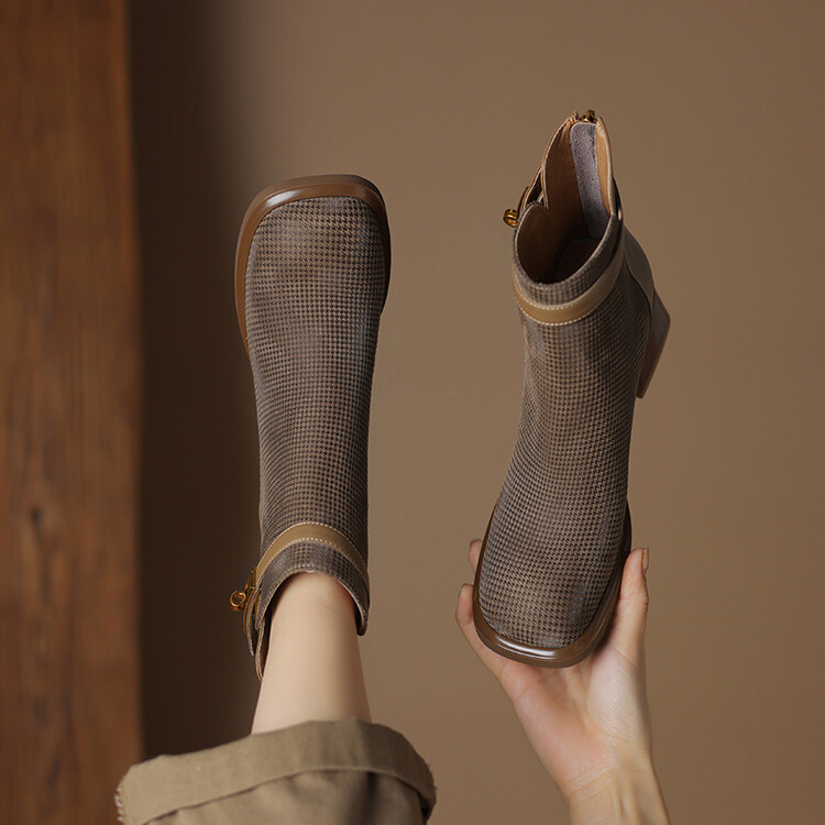 【预售5天】秋冬新款复古时尚牛皮粗跟短靴女拼接后拉链通勤马丁靴WXJFG&W8026-X