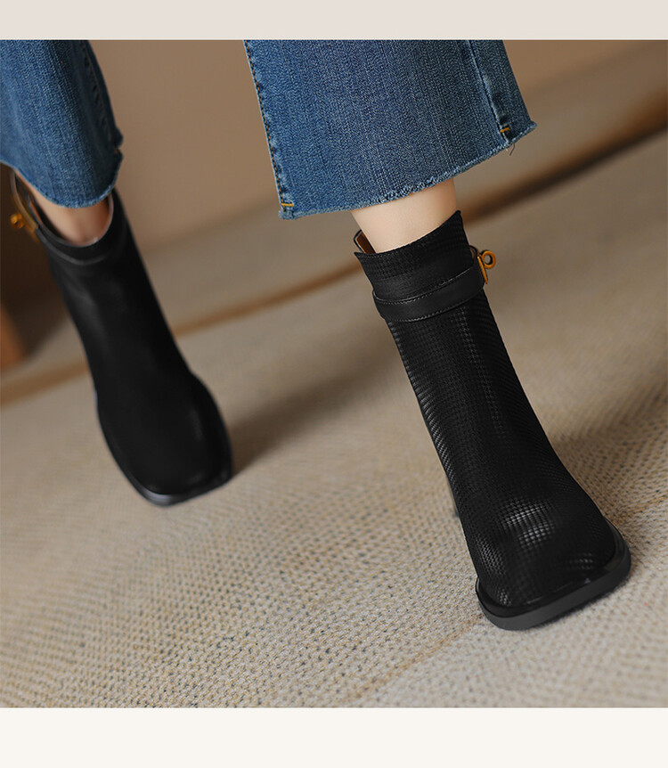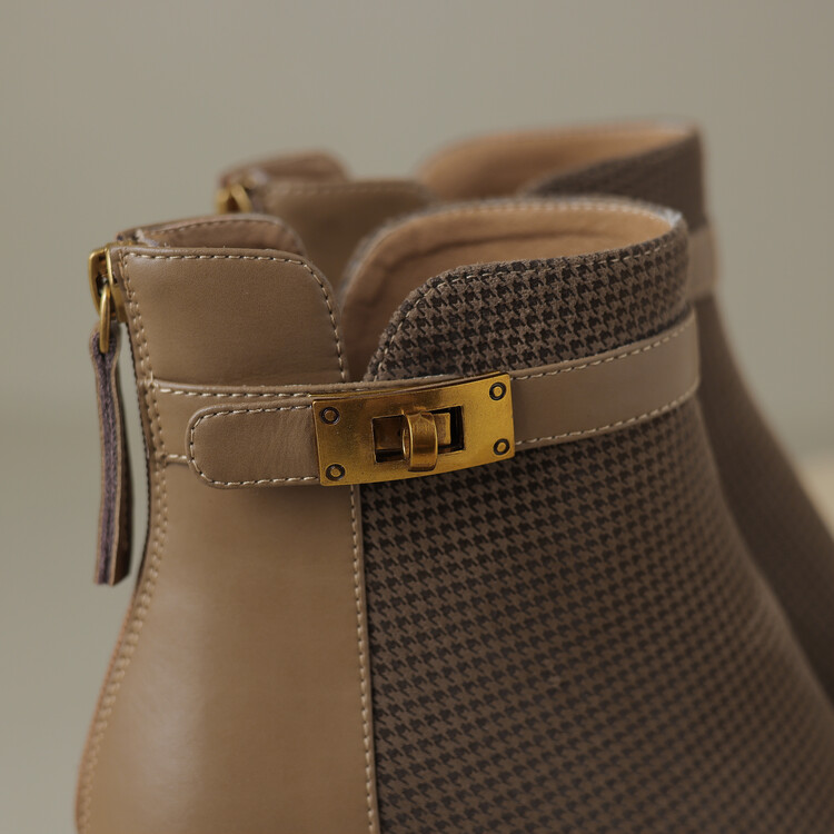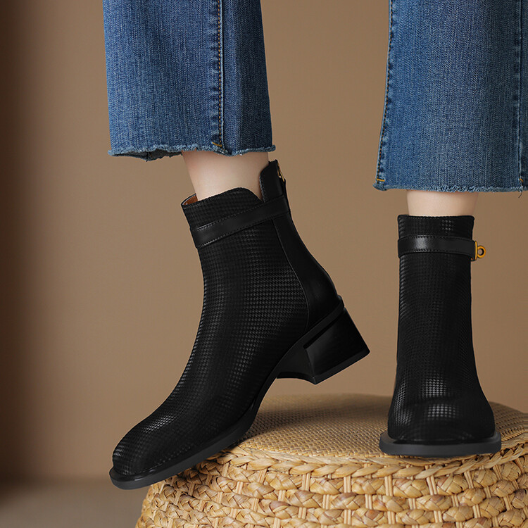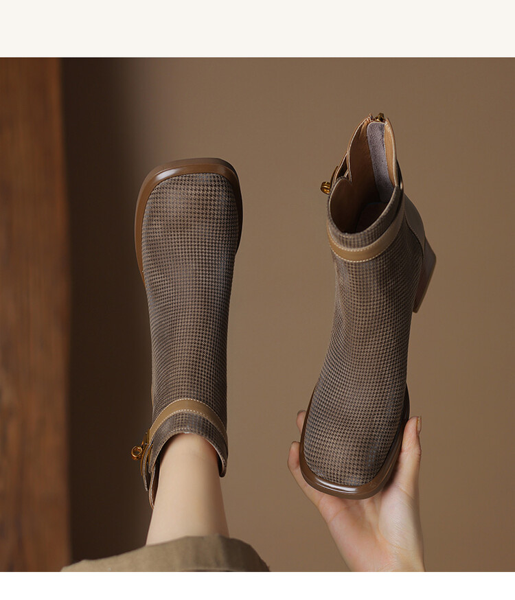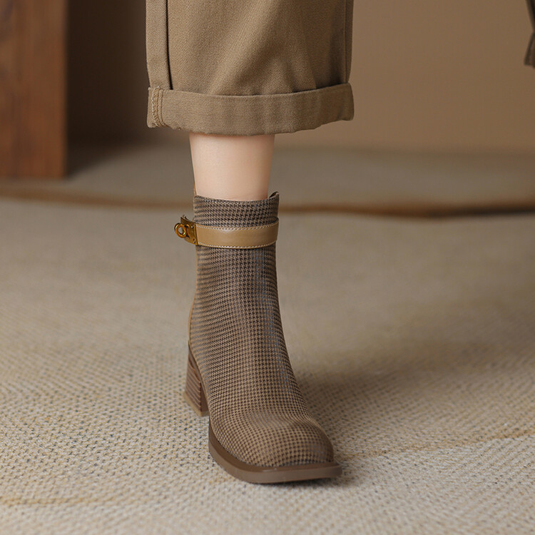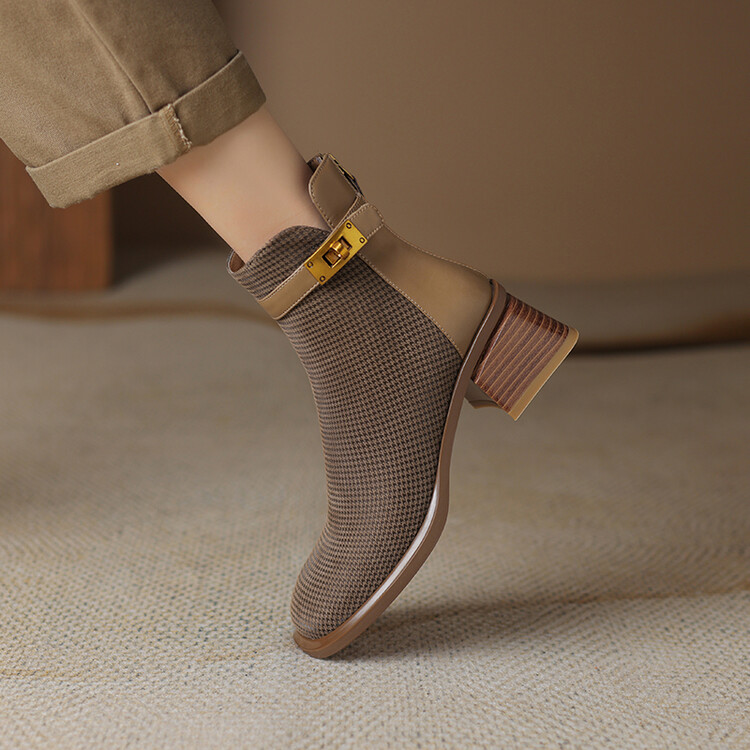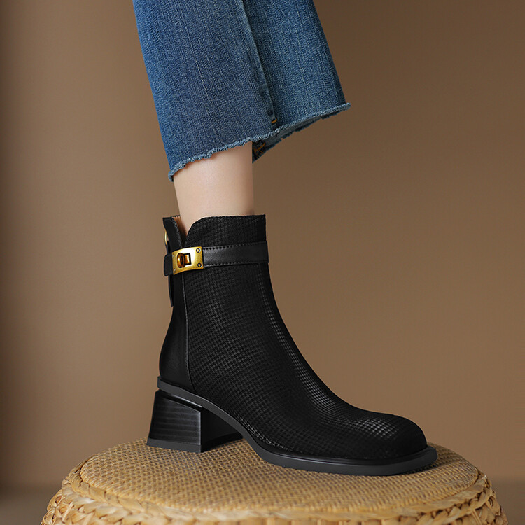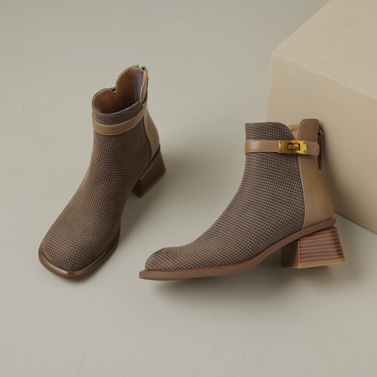 【预售5天】秋冬新款复古时尚牛皮粗跟短靴女拼接后拉链通勤马丁靴WXJFG&W8026-X