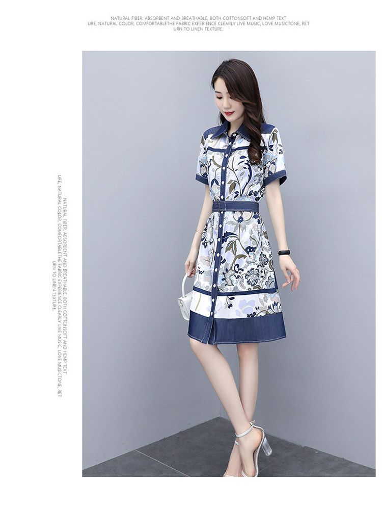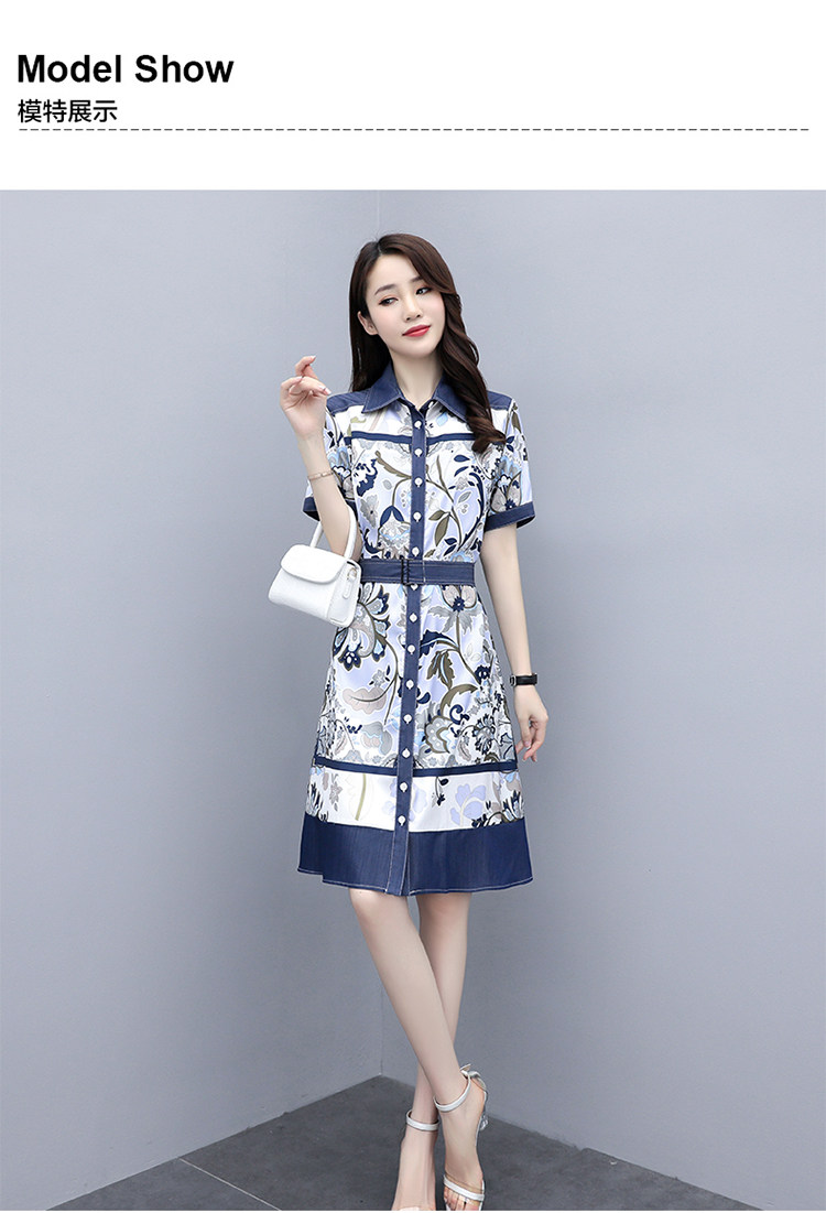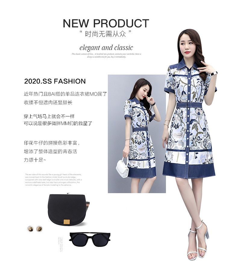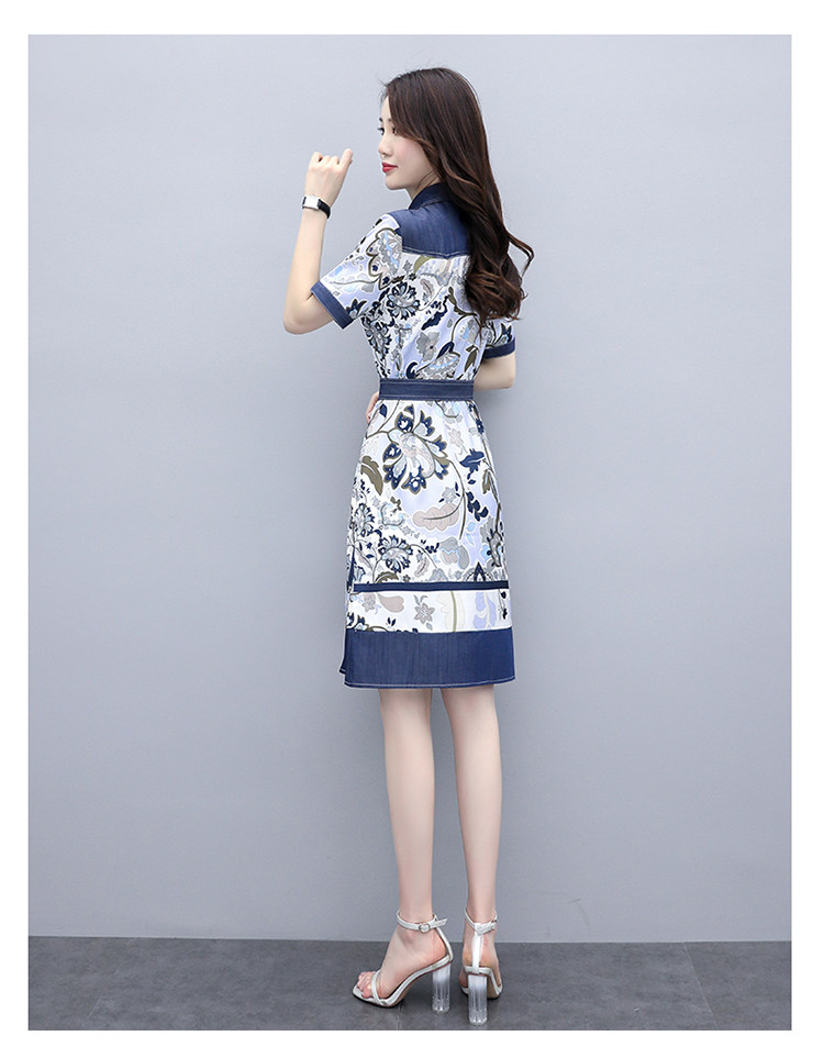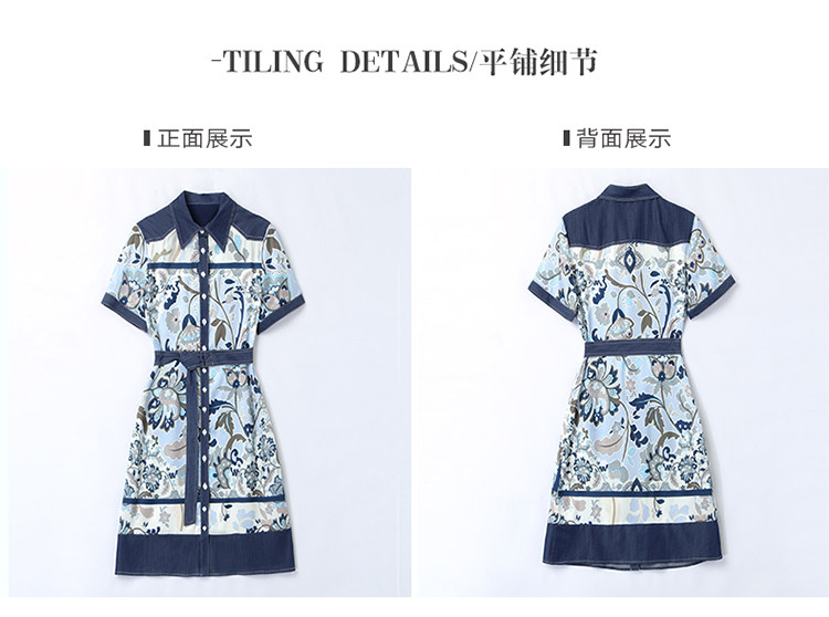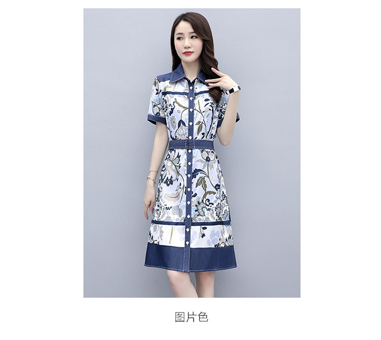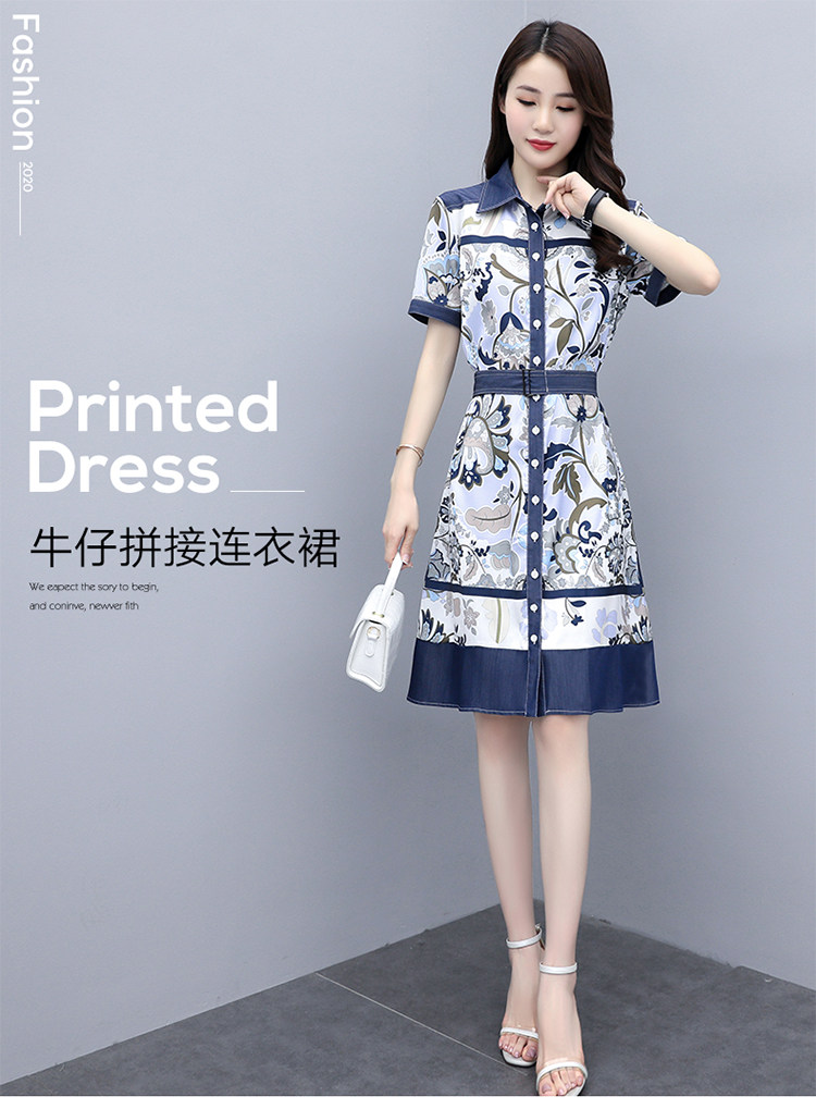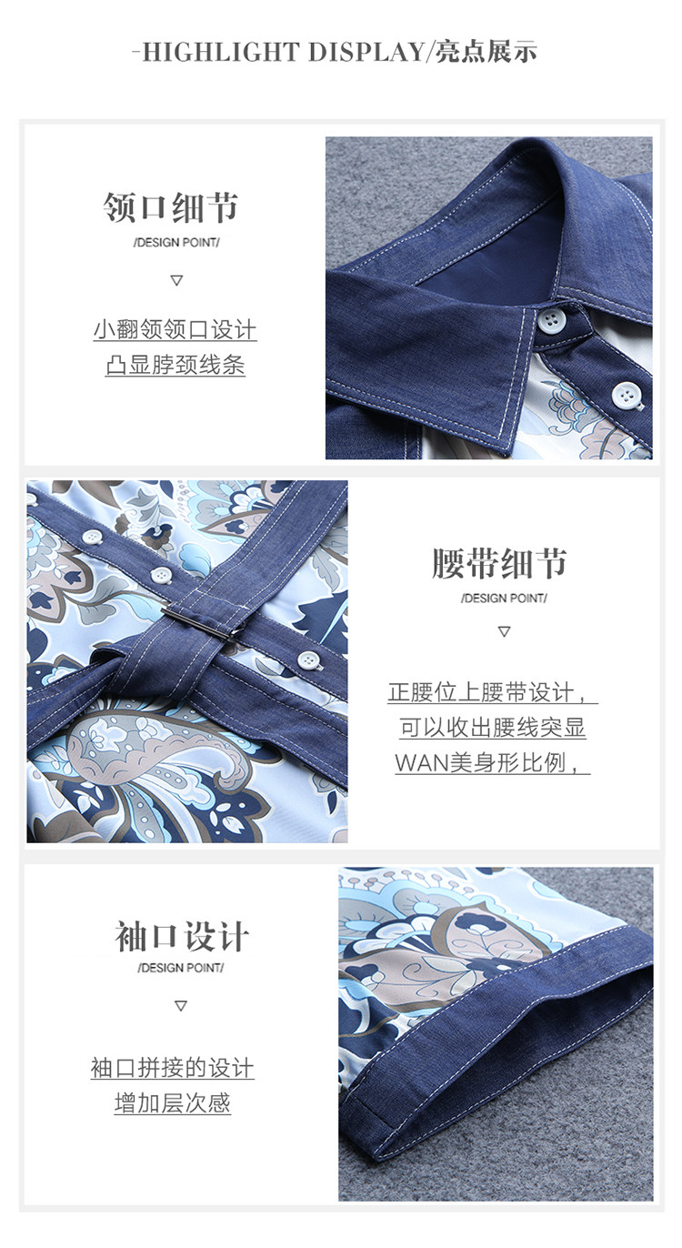 MD-CHYZX2021气质牛仔印花衬衫时尚polo领拼接国风裙子