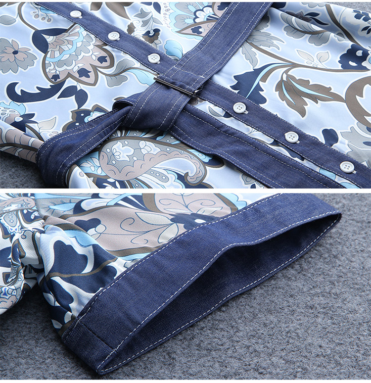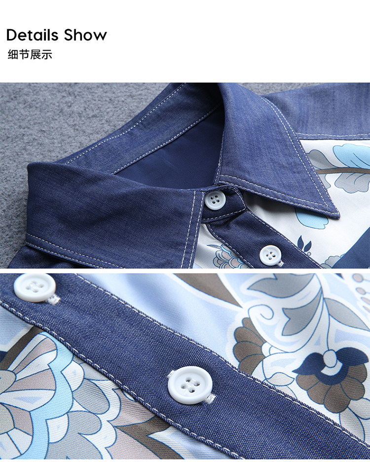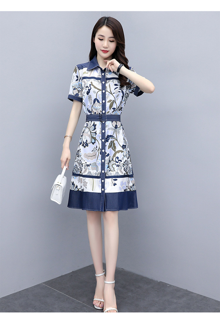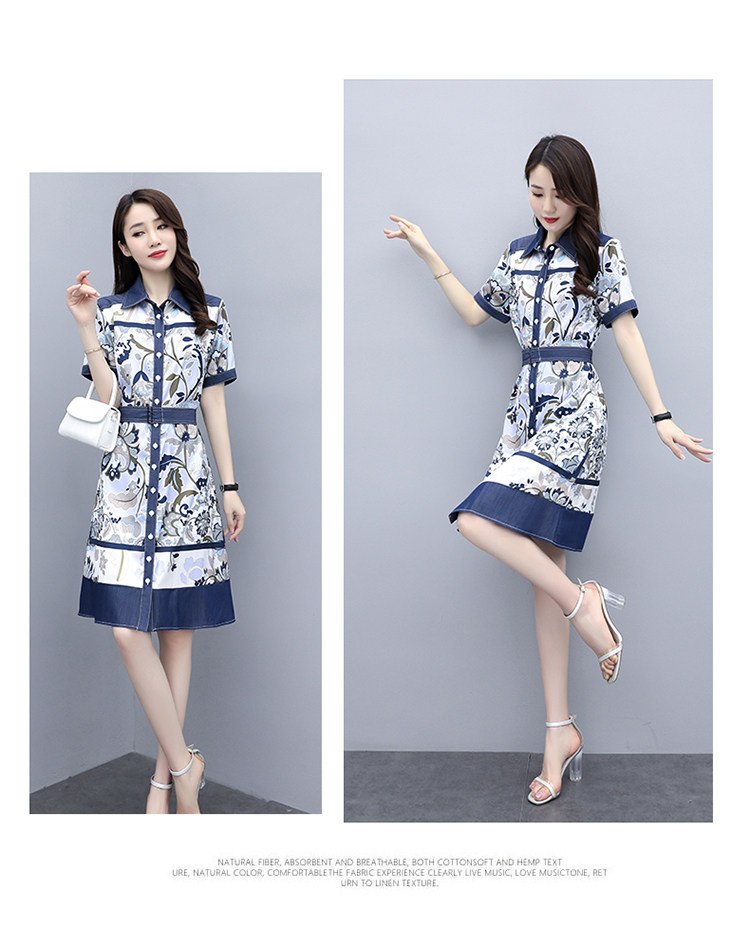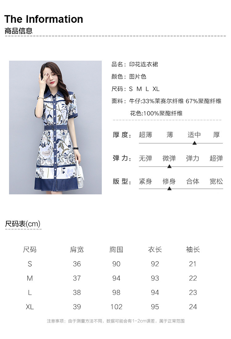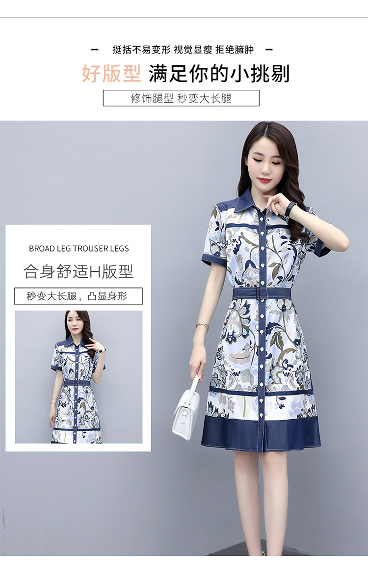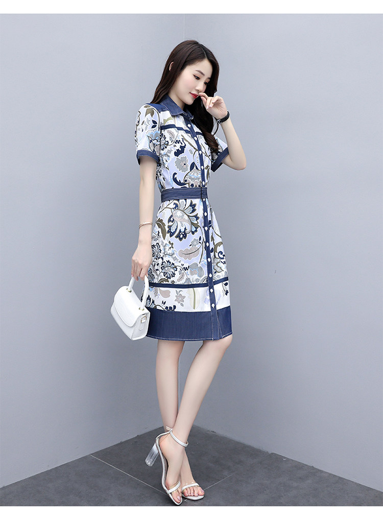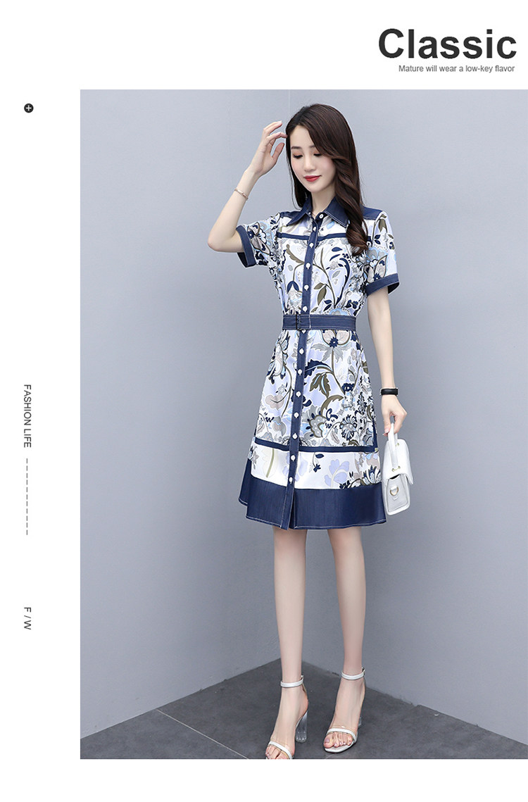 MD-CHYZX2021气质牛仔印花衬衫时尚polo领拼接国风裙子