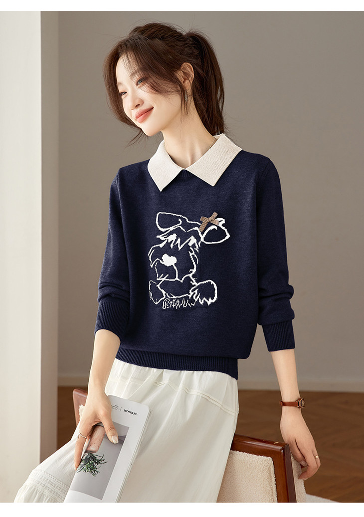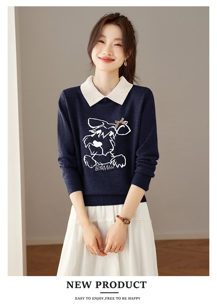 娃娃领毛衣内搭,洋气减龄上衣宽松短款打底针织衫CC-27-25168