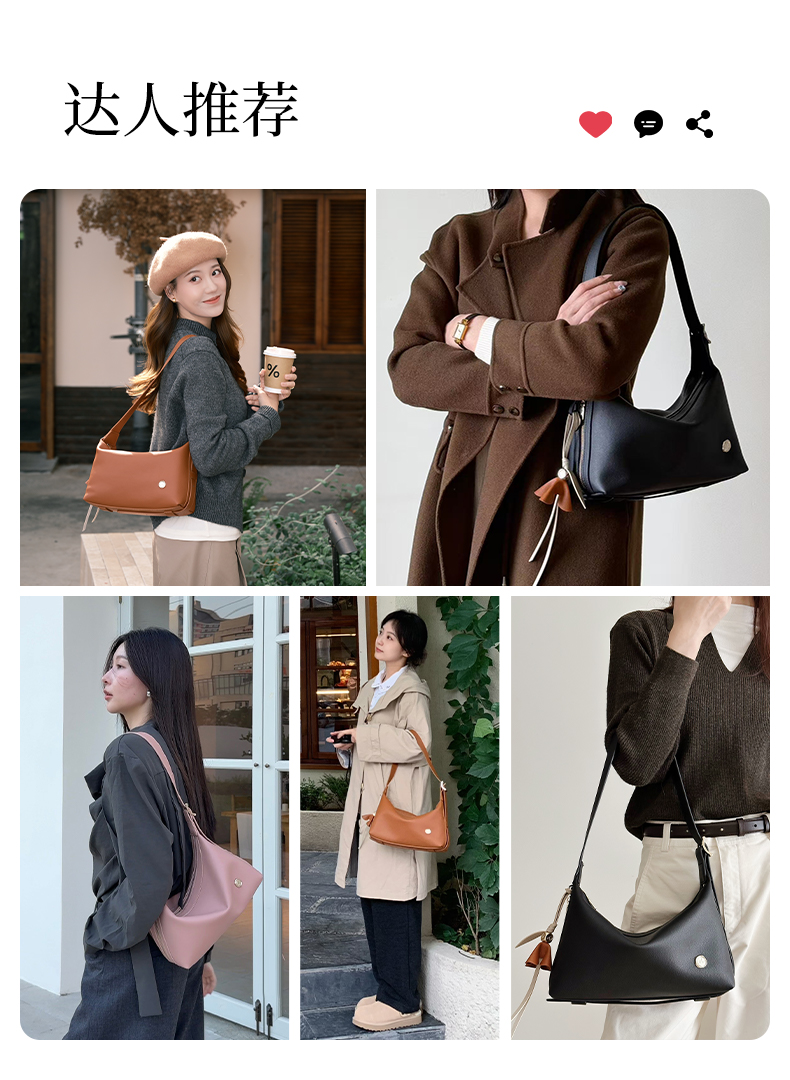 独白X卡拉羊 超轻随性通勤百搭时尚单肩包Hobo包D4061