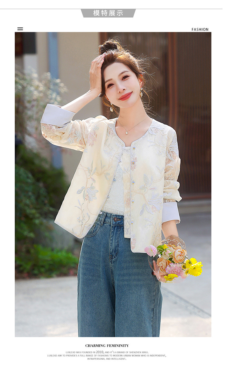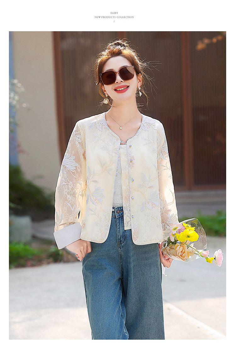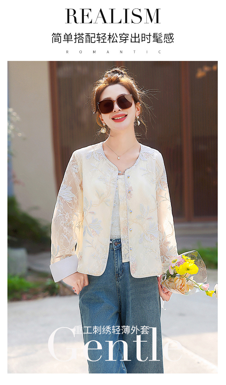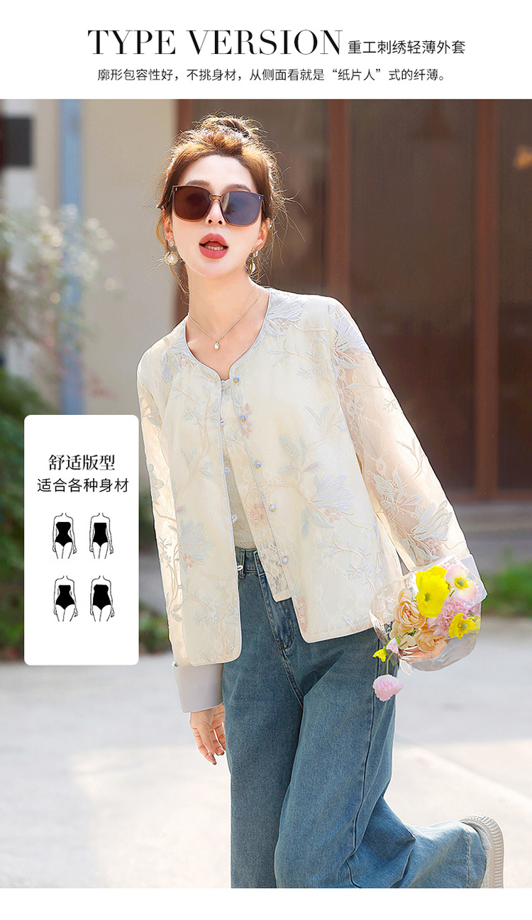 HR YWY8995小香风蕾丝重工刺绣薄外套洋气防晒衣外搭开衫