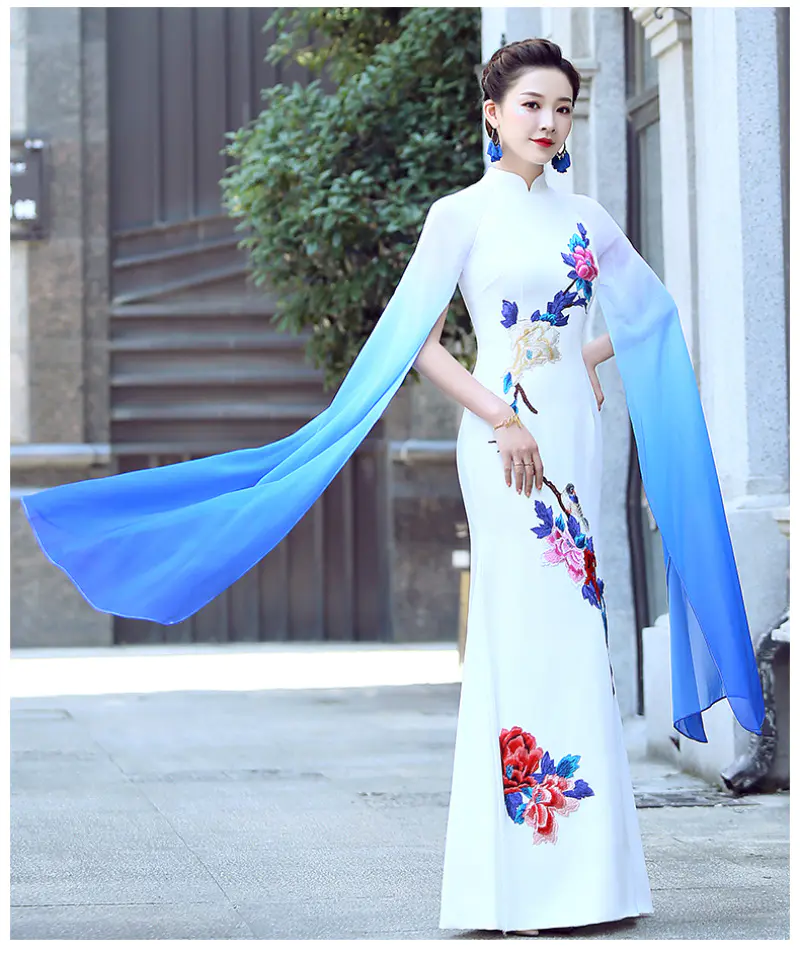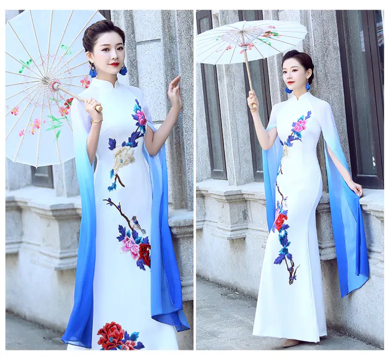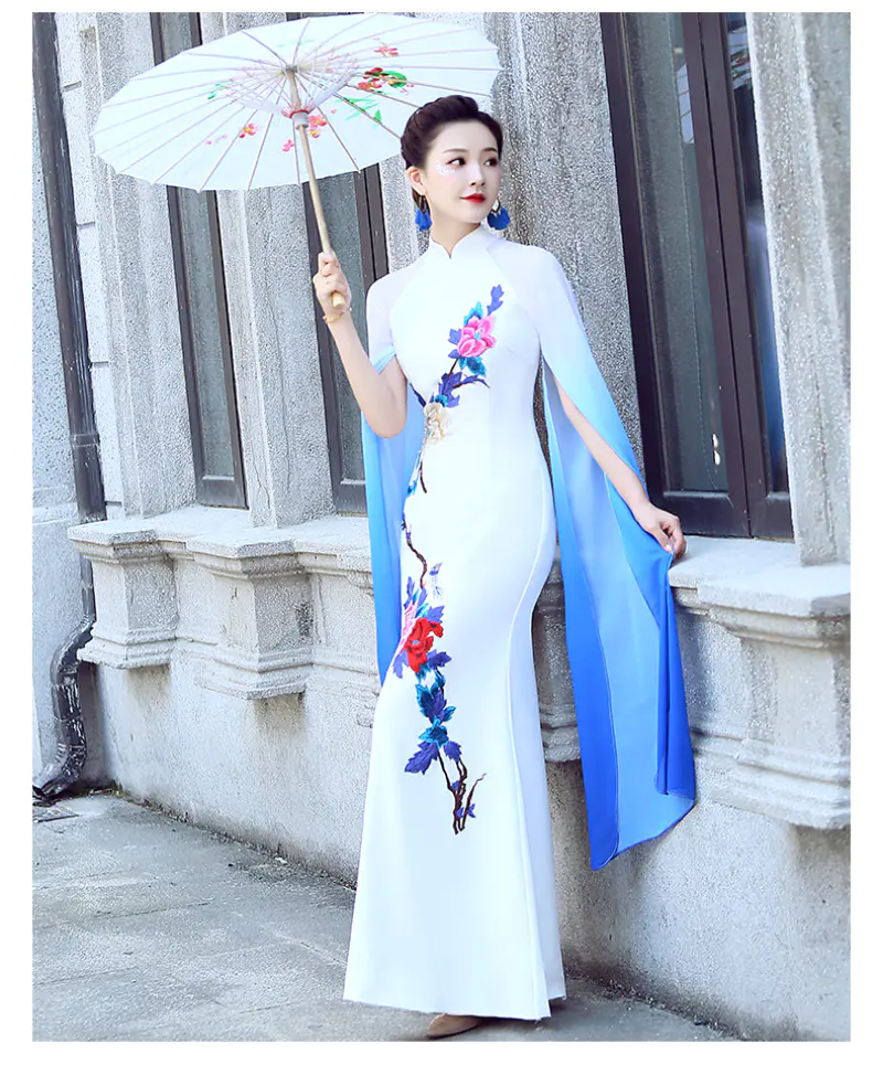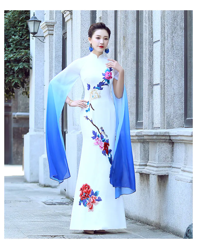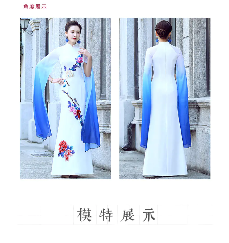 CJH-1221走秀复古优雅中国风大气舞台表演改良版演出服长款旗袍连衣裙